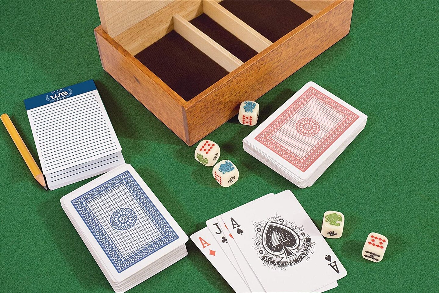 WE Games Aces & Spades Wood Card & Poker Dice Box