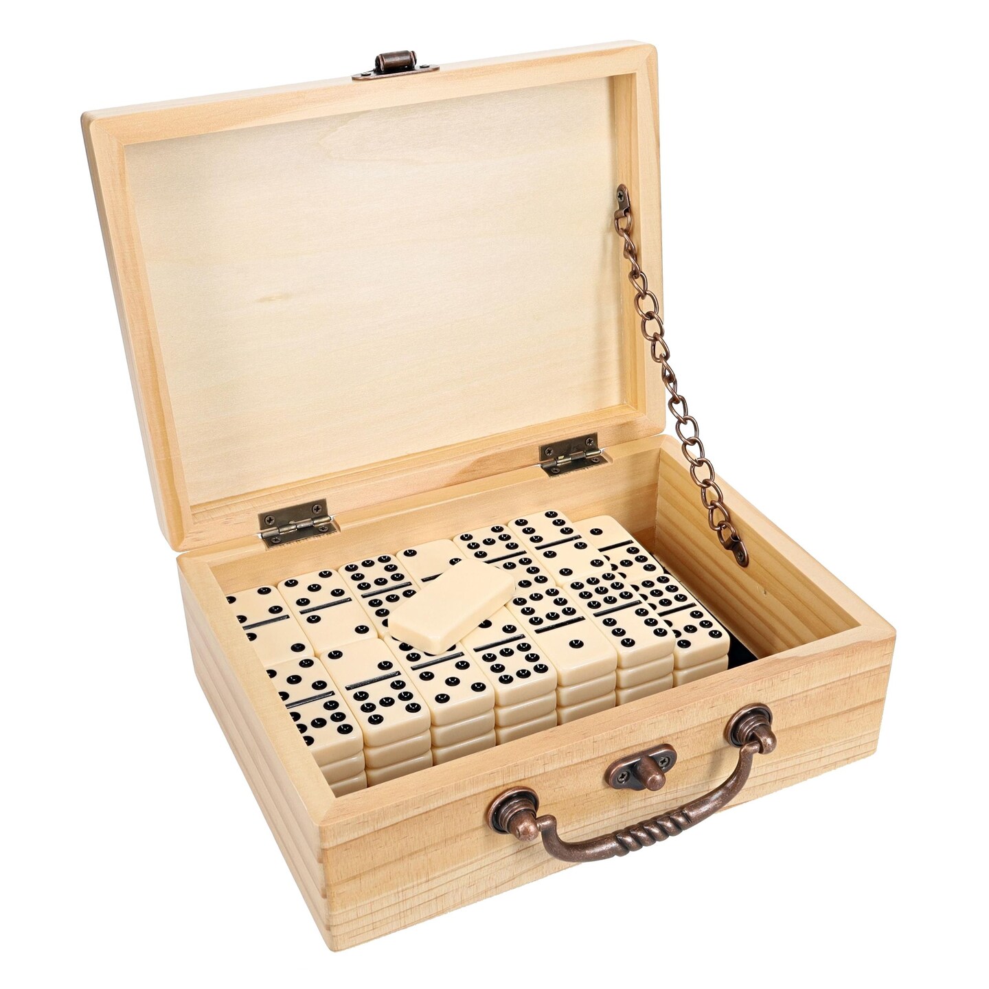 WE Games Double 9 Dominoes in Wooden Treasure Box, Ivory Color