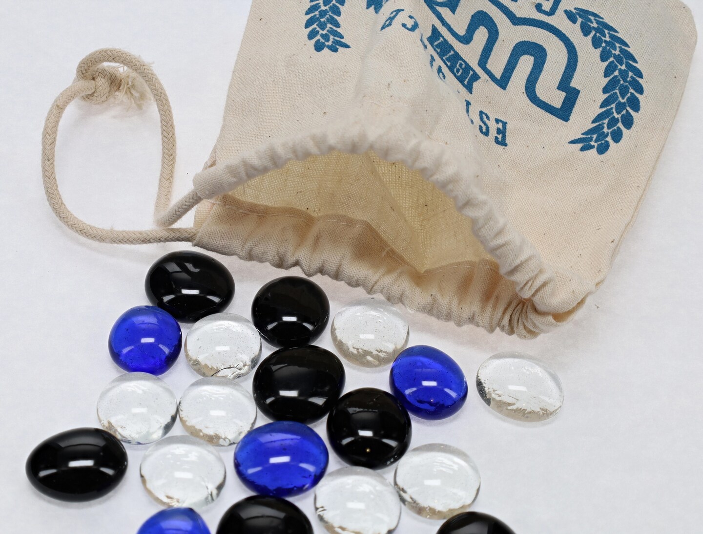 WE Games Glass Mancala Stones in Blue, Black, and Clear