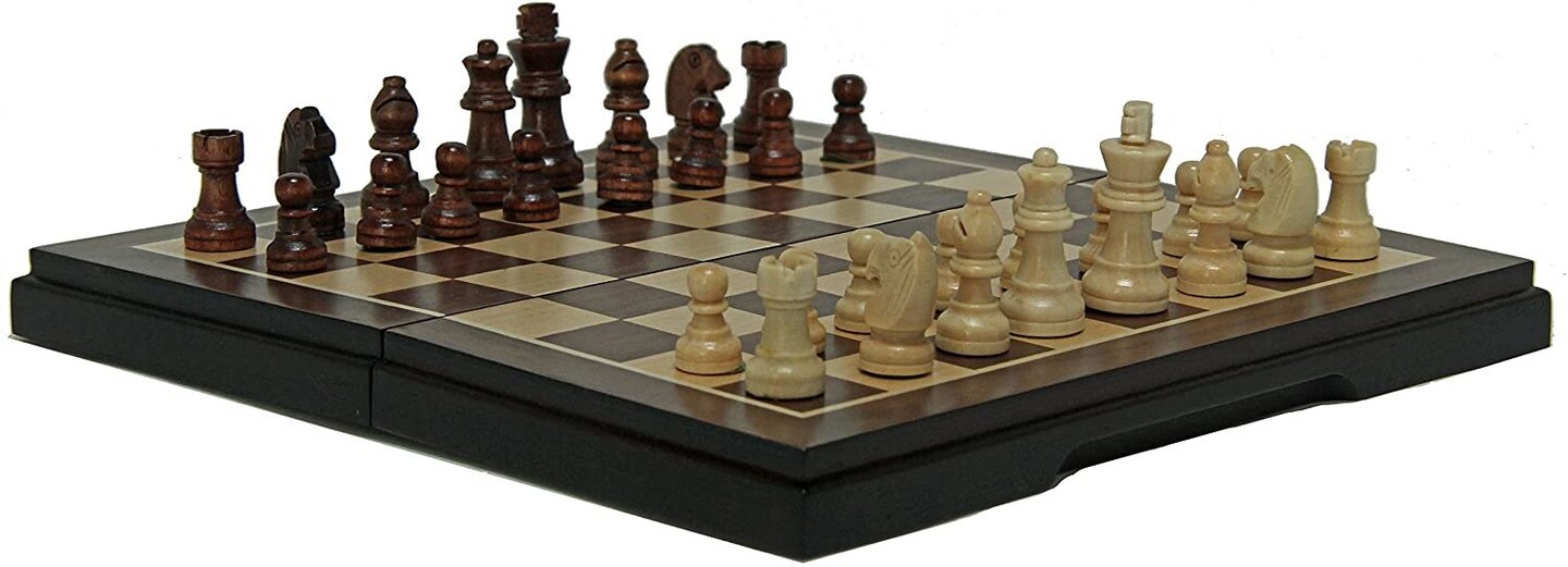 WE Games Magnetic Folding Chess & Checkers Set - Walnut Wood Finish - 8 inch for travel