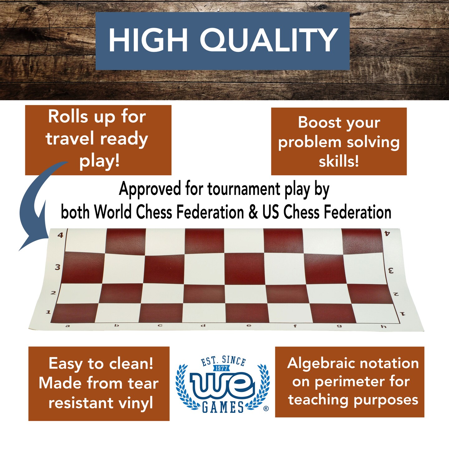 WE Games Tournament Roll Up Vinyl Chess Board - 20 inches