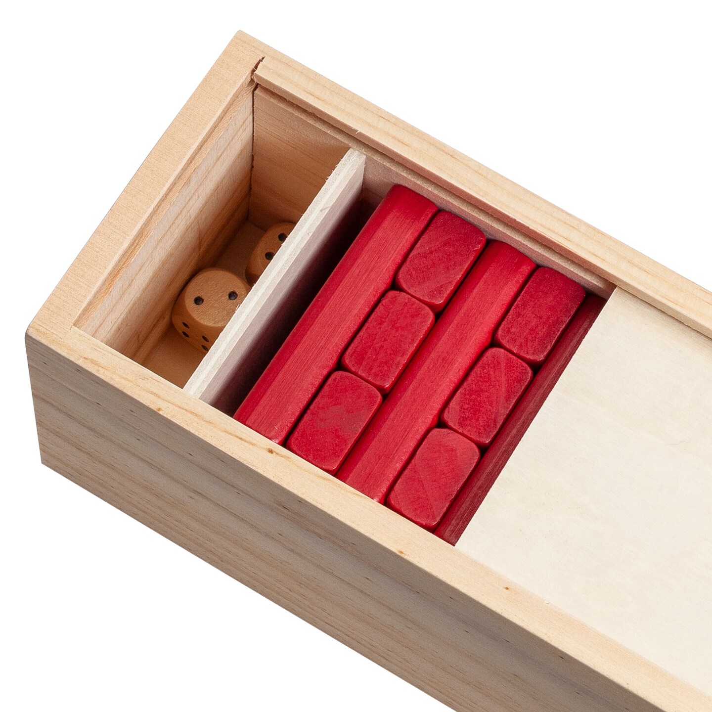 WE Games Wood Block Stacking Party Game That Tumbles Down when you play - Includes 12 in. Wooden Box and die
