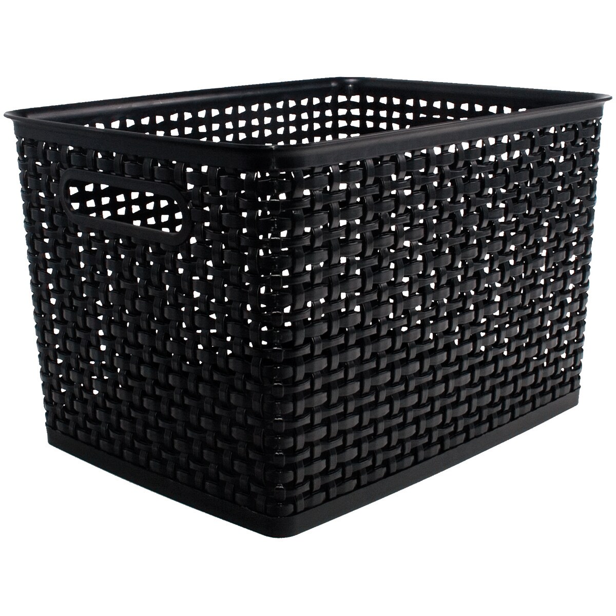 Weave Design Plastic Bin Large-Black, 13.75"L X 10.5"W X 8.75"H