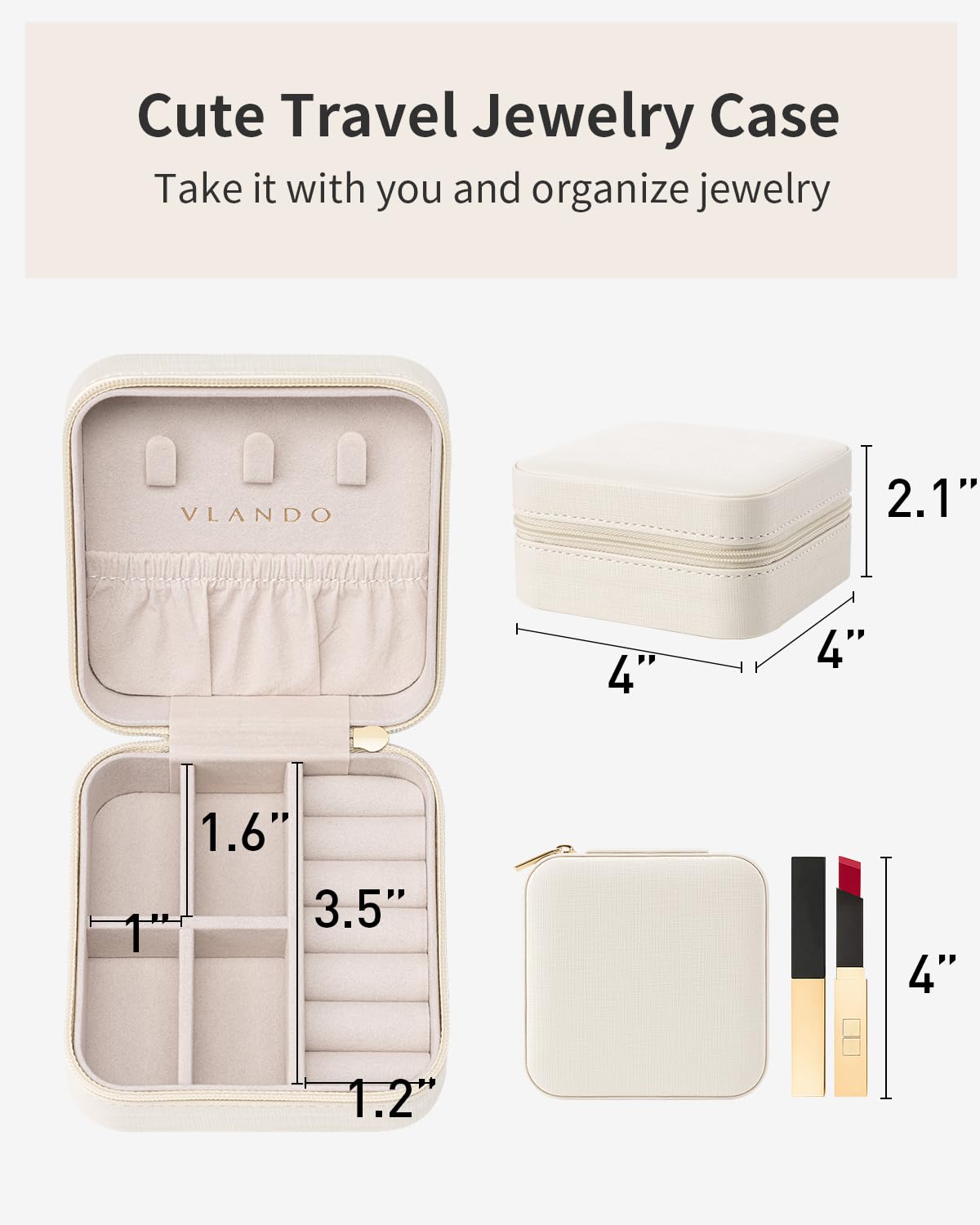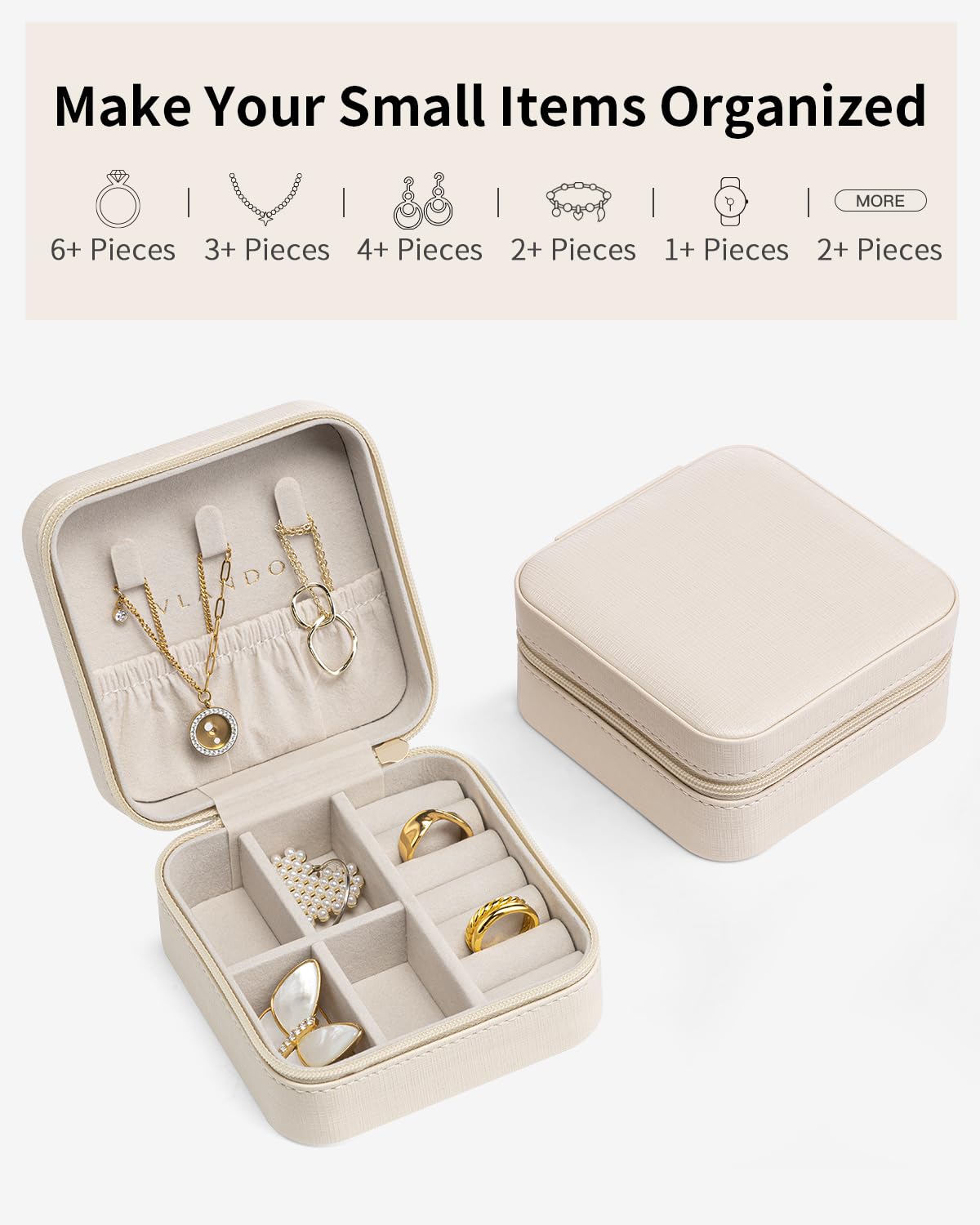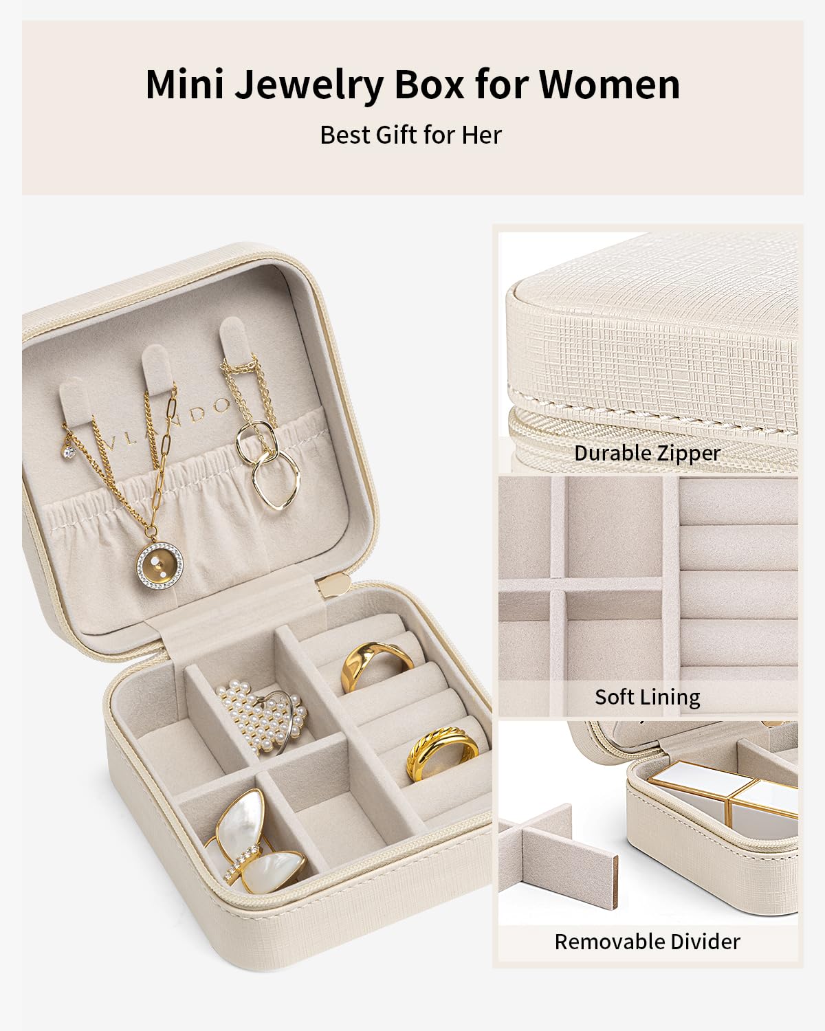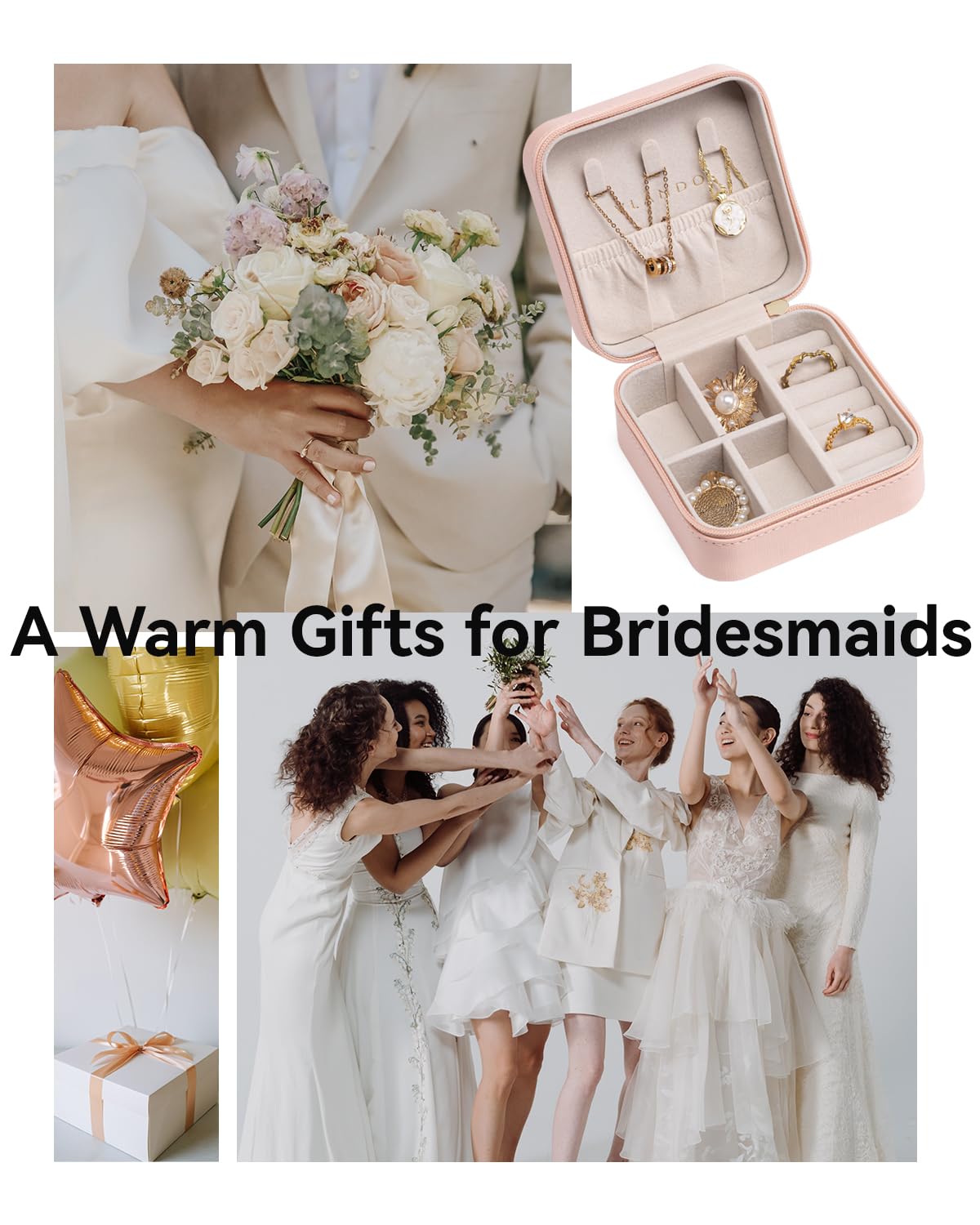 Wedding Bridesmaid Gifts - Valentines Day Gifts for Her - Small Jewelry Travel Organizer, Travel Jewelry Case for Ring, Earring, Necklace, Bracelet - Milky White