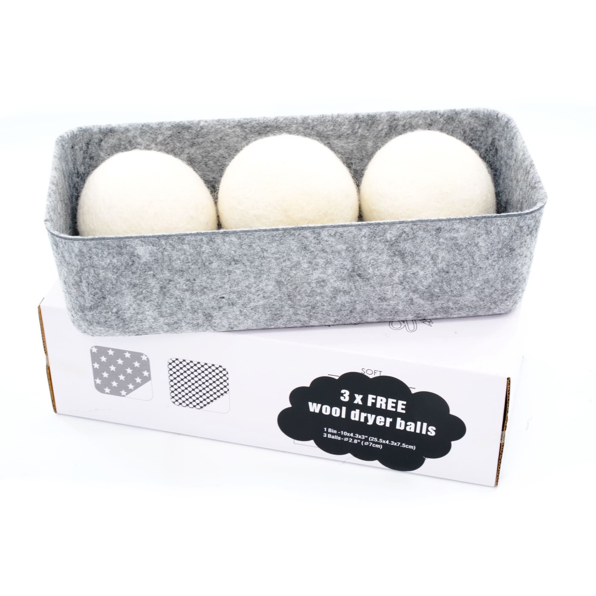 Welaxy Felt 3 Wool Dryer Balls with Gray Storage Tray
