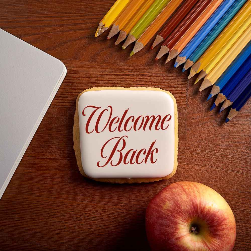 Welcome Back Cookie & Craft Stencil | CM180 by Designer Stencils | Cookie Decorating Tools | Baking Stencils for Royal Icing, Airbrush, Dusting Powder | Craft Stencils for Canvas, Paper, Wood | Reusable Food Grade Stencil