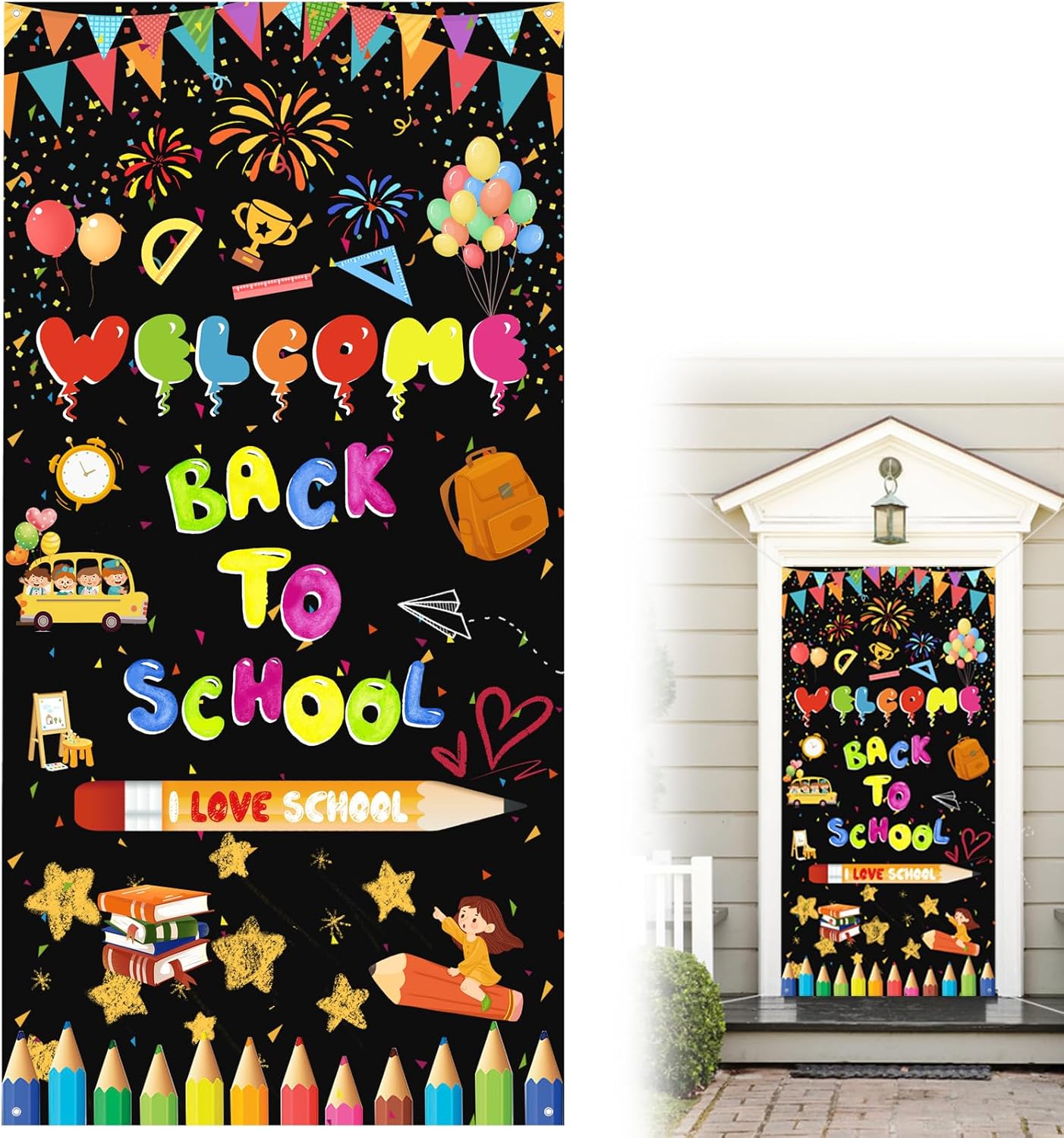 Welcome Back Decorations, Back to School Door Covers, Multicolor,180*90cm/72*35.43in
