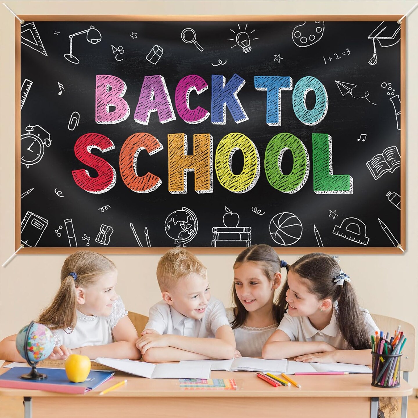 Welcome Back to School Backdrop Banner Decorations (Multicolor) 43"L x 71"W