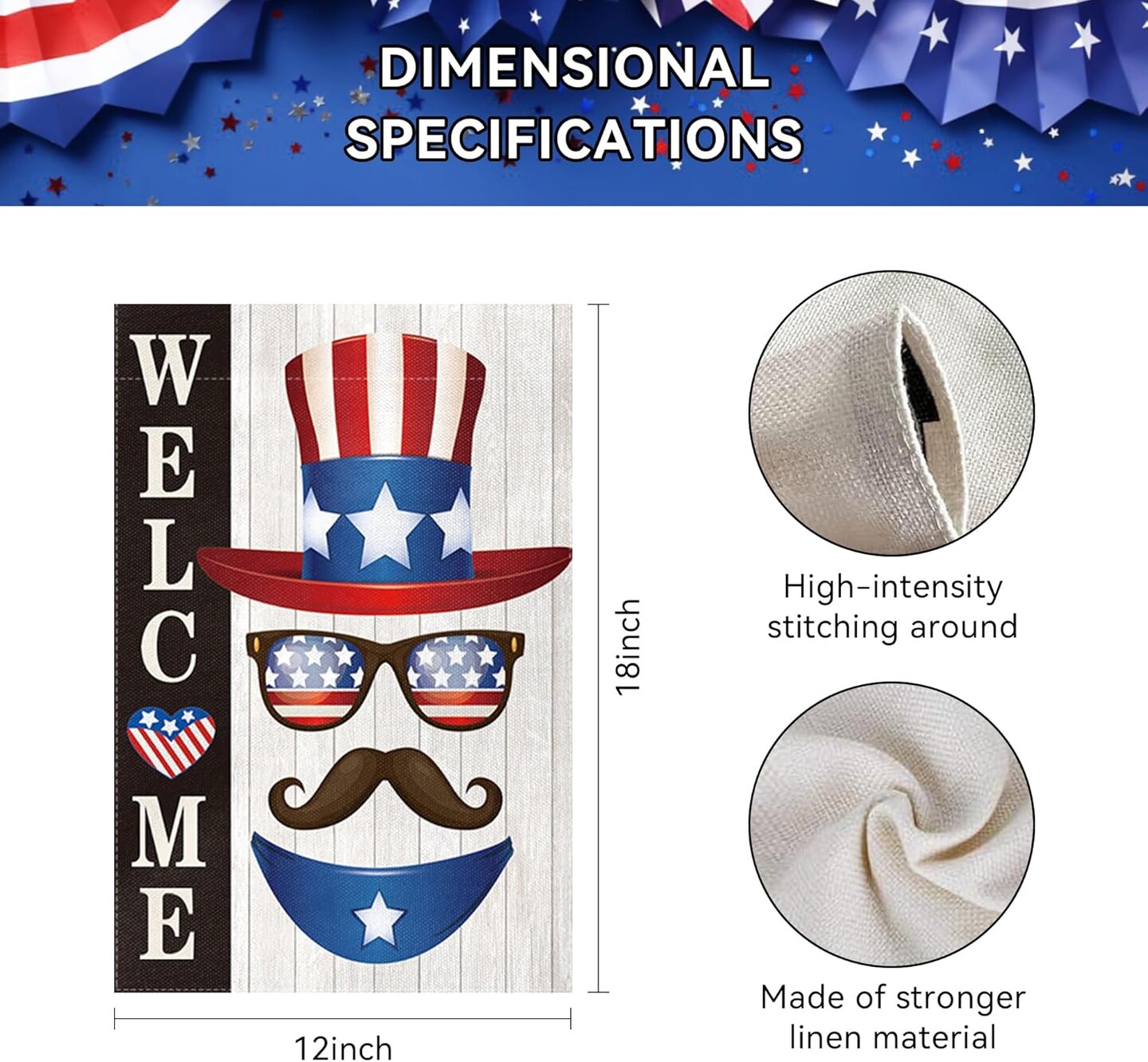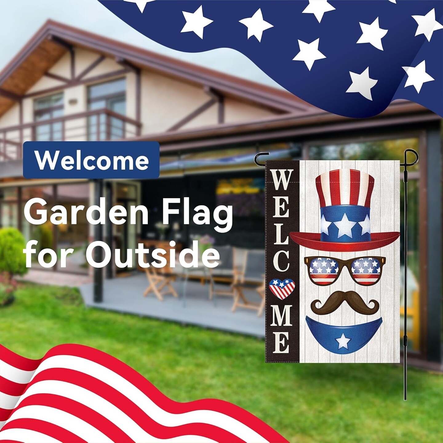 Welcome Garden Flags Independence Day American small flags for yard and garden for Outside 4th of July Yard Decorations Memorial Day Patriotic 12x18″ Double Sided Linen Summer Blue Red Garden Flag