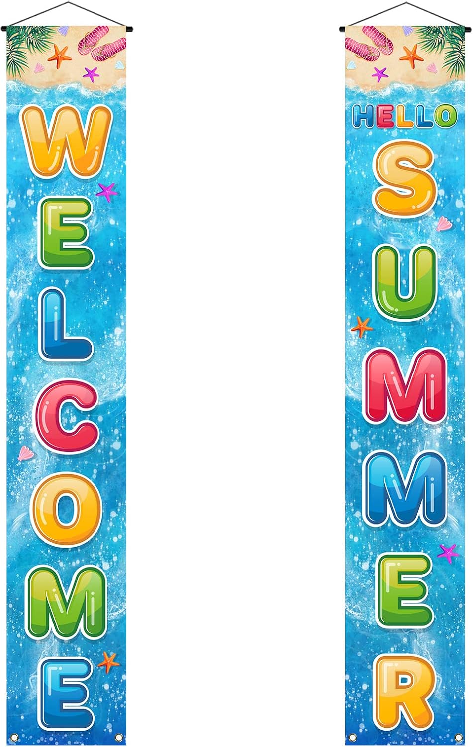 Welcome Hello Summer Porch Banner Beach Hawaiian Themed Hanging Front Door Yard Outdoor Holiday Party Decoration