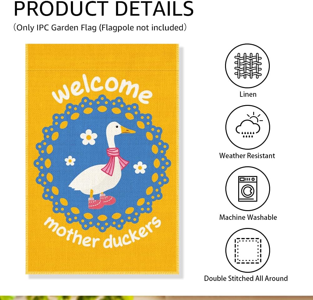 Welcome Mother Duckers Garden Flag, Funny Silly Goose Yard Flag for Outside, Cute Housewarming Friendsgiving Gifts for Friend Family