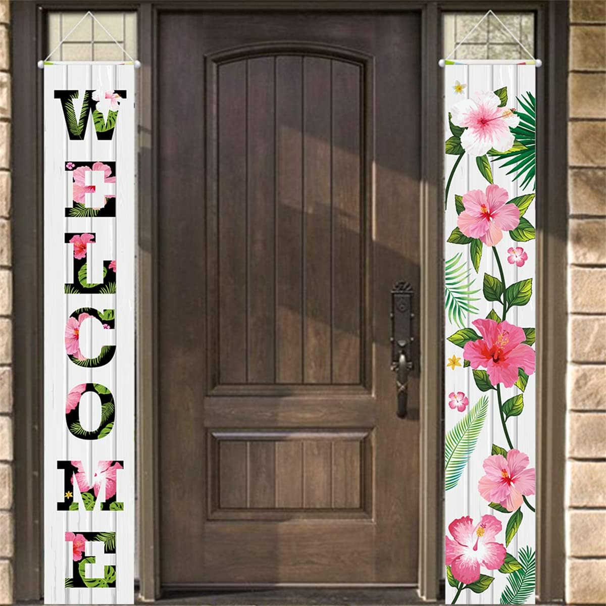 Welcome Spring Summer Porch Banners 70.8 x 11.8 inch,Hawaiian Aloha Porch Sign