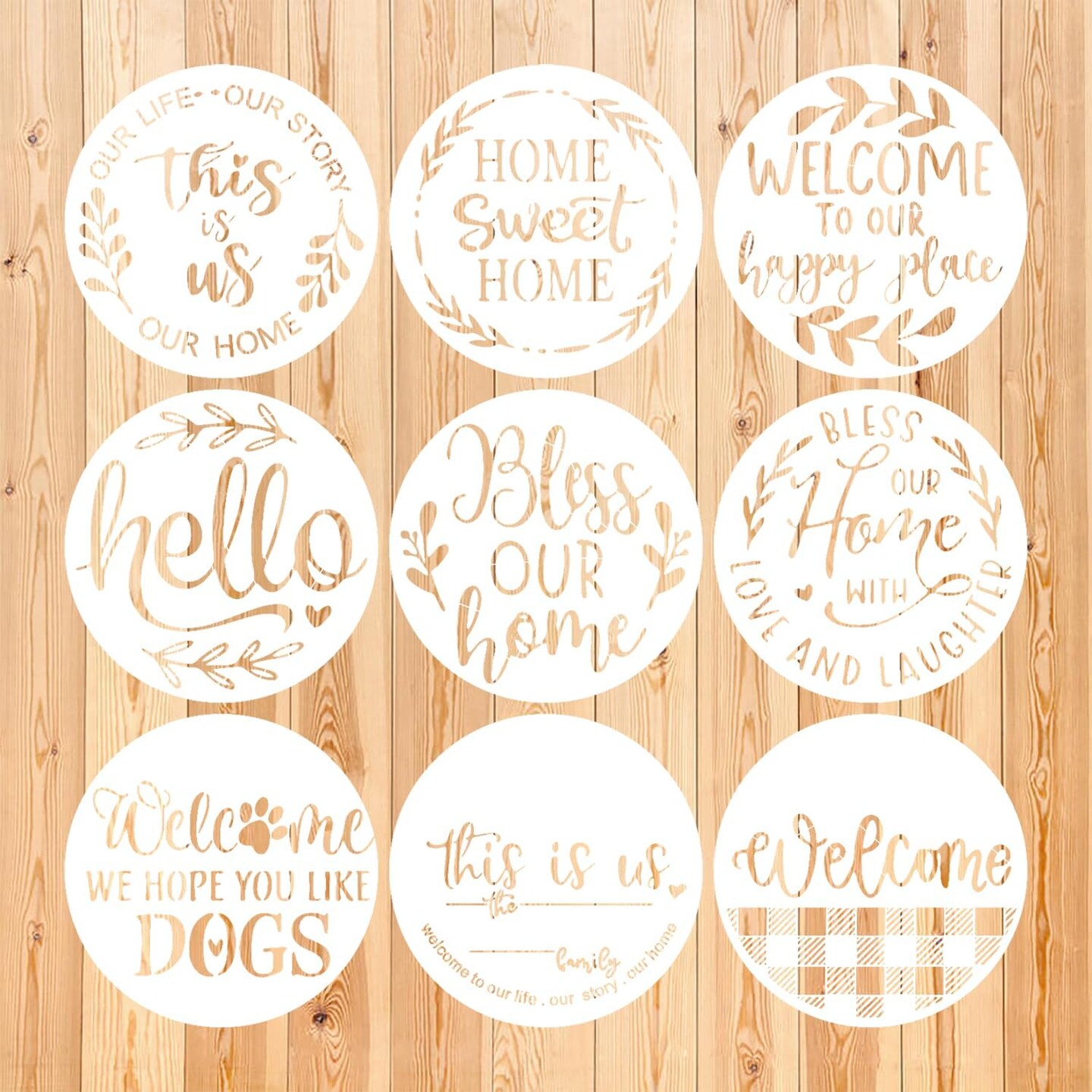 Welcome Stencils for Painting on Wood, 12” Round Stencils for Painting