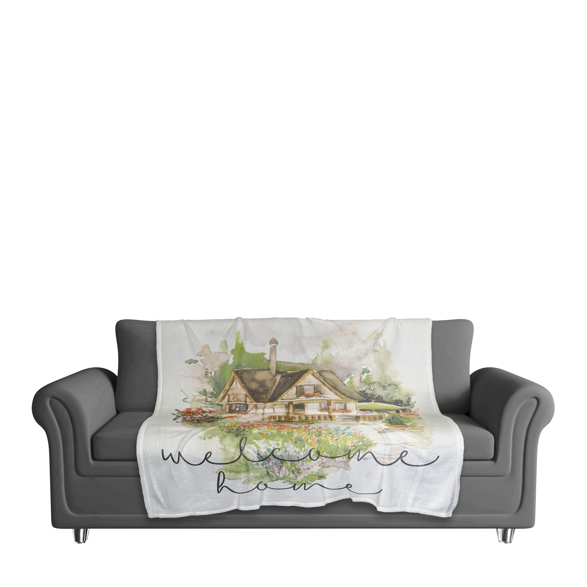 Welcome Watercolor Cottage Fleece Blanket