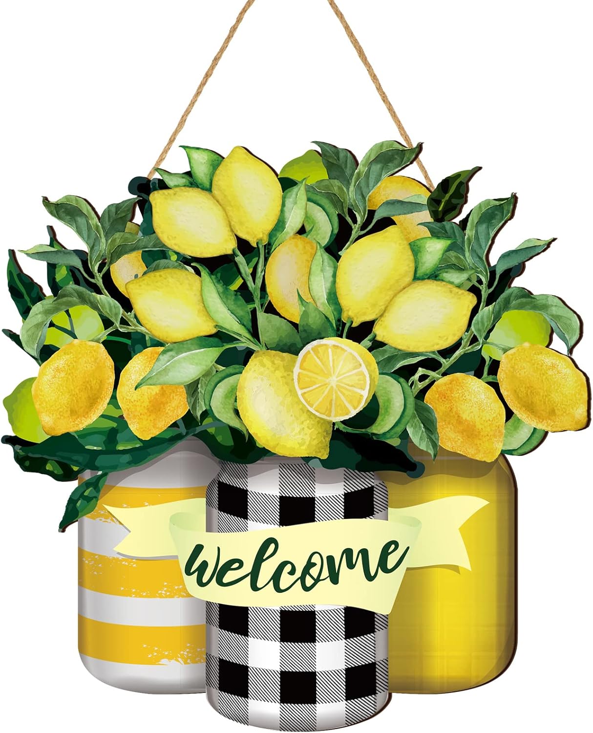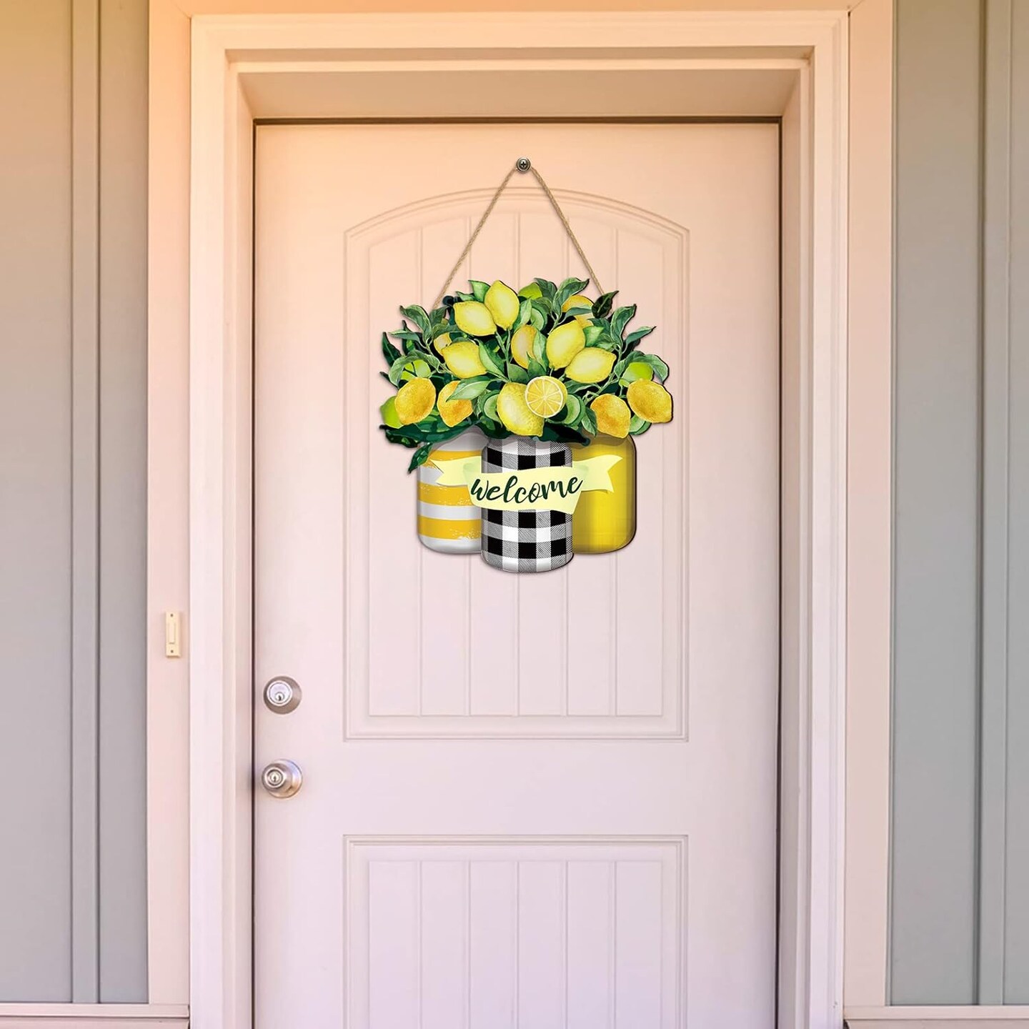 Welcome Wooden Sign for Front Door Wooden Hanger Summer Door Sign Wood Spring Hanging Decorations Farmhouse Porch Decor