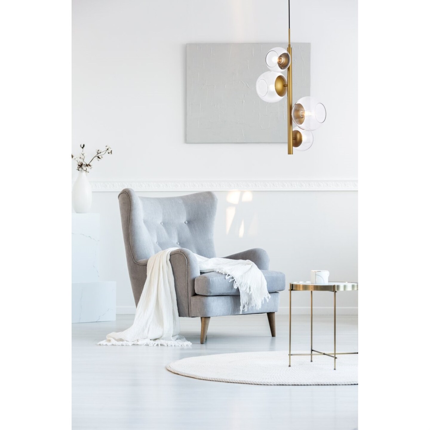 Wells 18 inch pendant in brass with clear shade