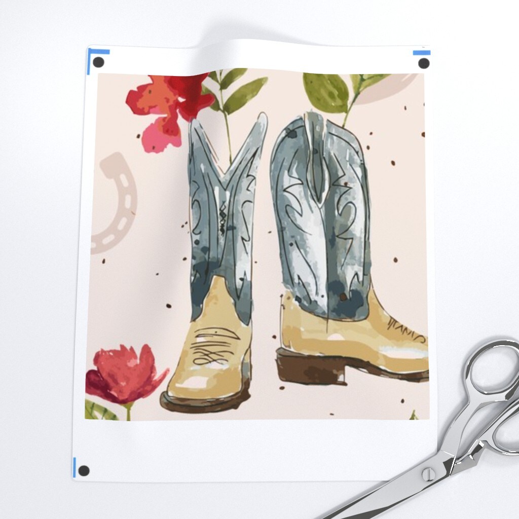 Western Boots Large Pink Floral Horse Watercolor Cowboy Custom Printed Fabric by Spoonflower Various Fabrics by the Yard or Fat Quarter