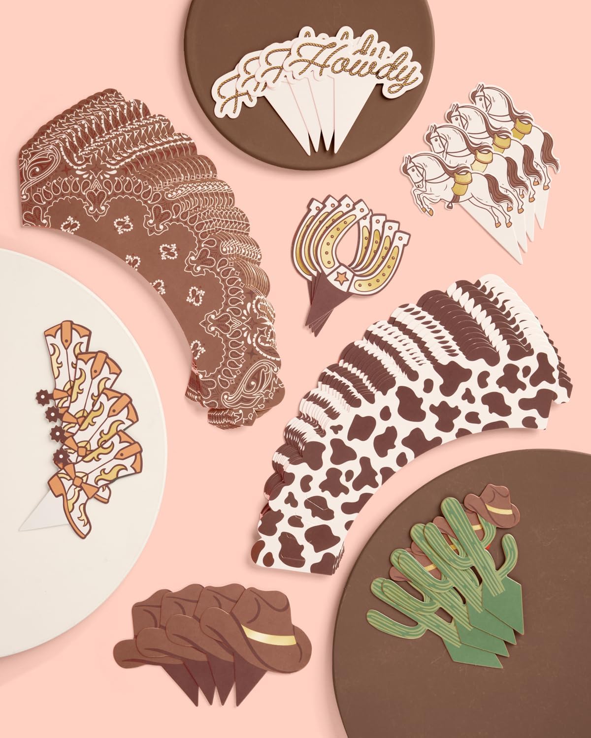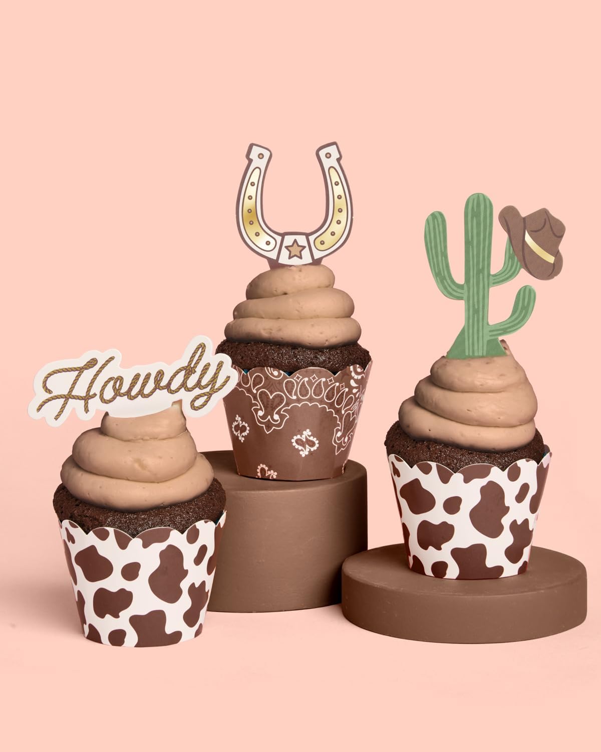 Western Cupcake Liners + Toppers - Set of 24 | Rodeo Birthday Cake Decoration, Hoedown Bachelorette Food Accessory, Kids Party Supplies