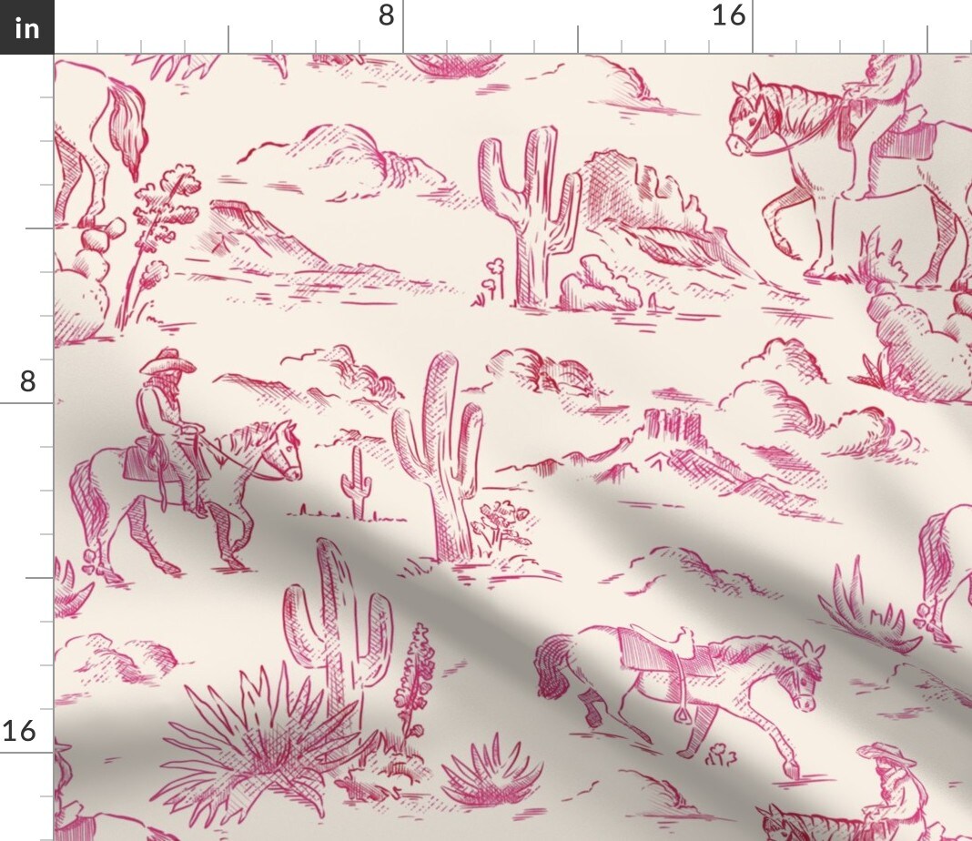 Western Landscape Cowboy Cactus Scenic Toile Custom Printed Fabric by Spoonflower Various Fabrics by the Yard or Fat Quarter