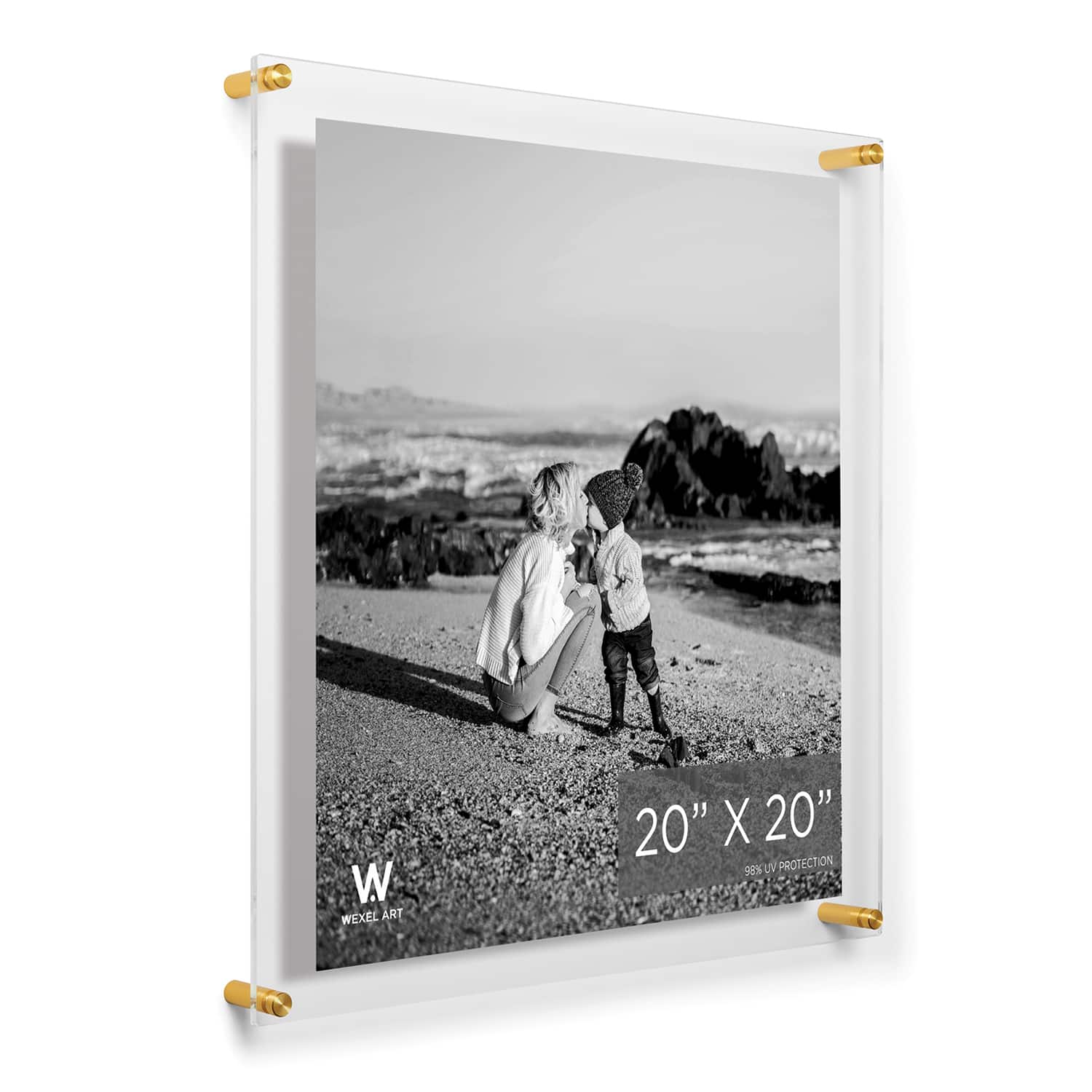 Wexel Art Double Panel Clear Acrylic Floating Wall Frame with Gold Hardware