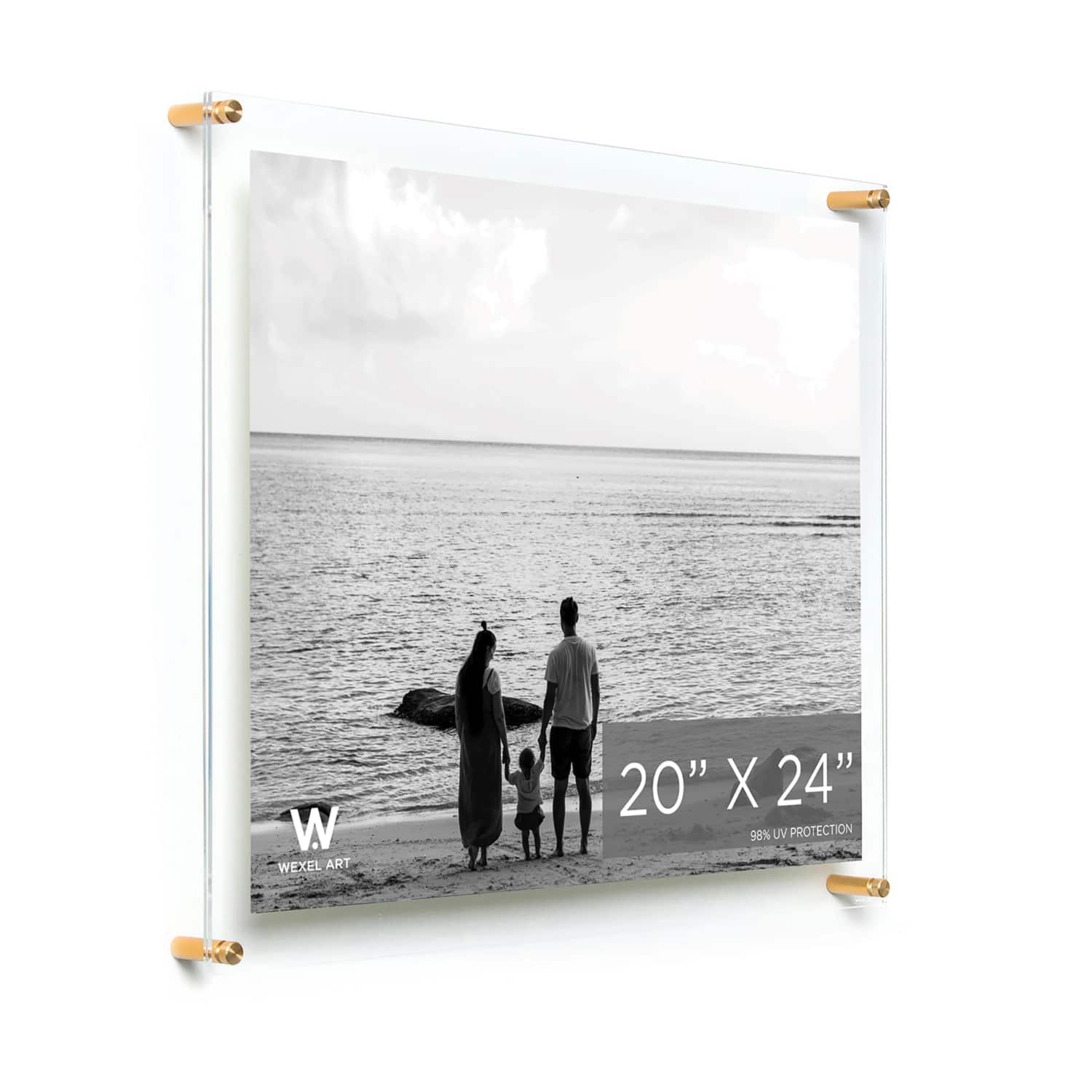 Wexel Art Double Panel Clear Acrylic Floating Wall Frame with Gold Hardware