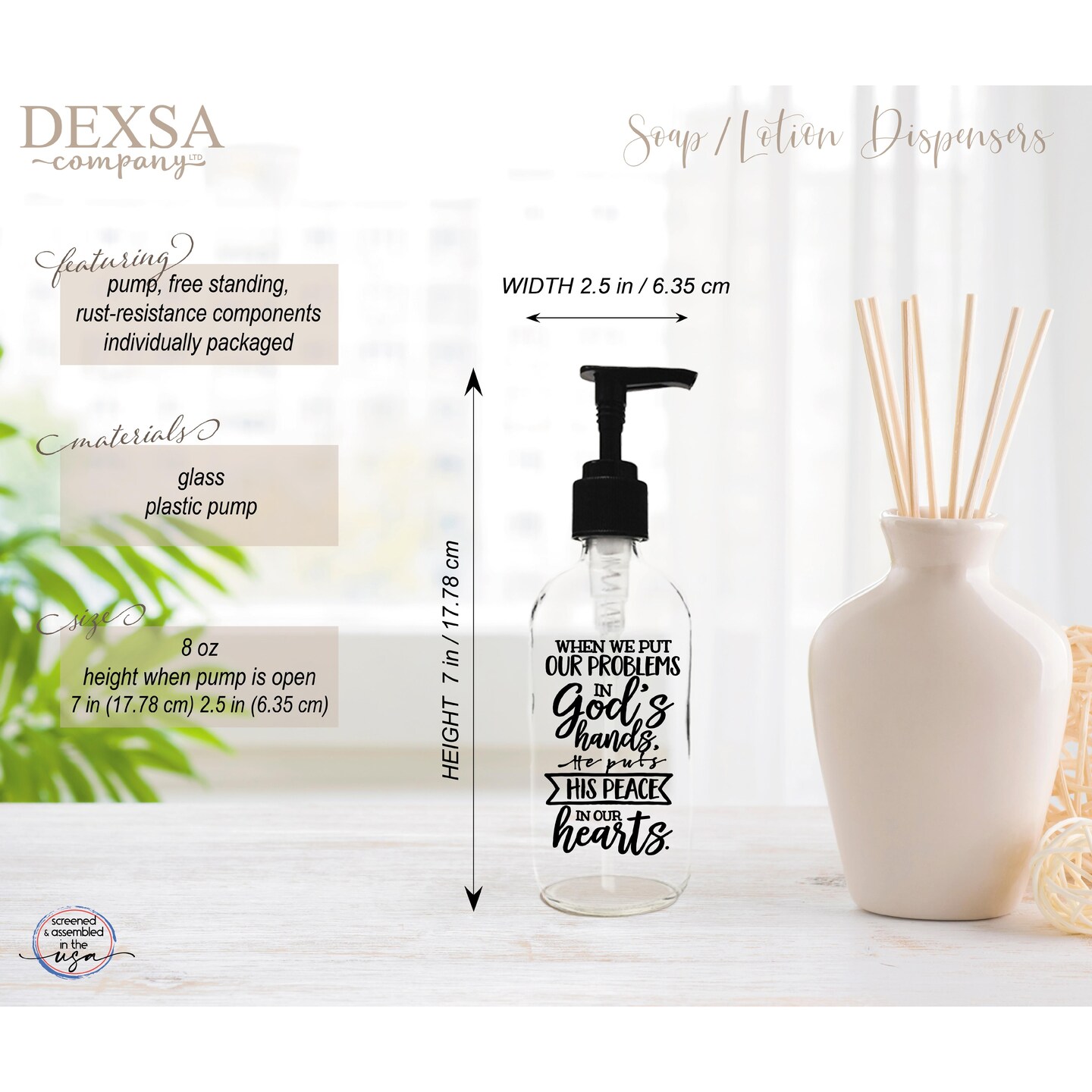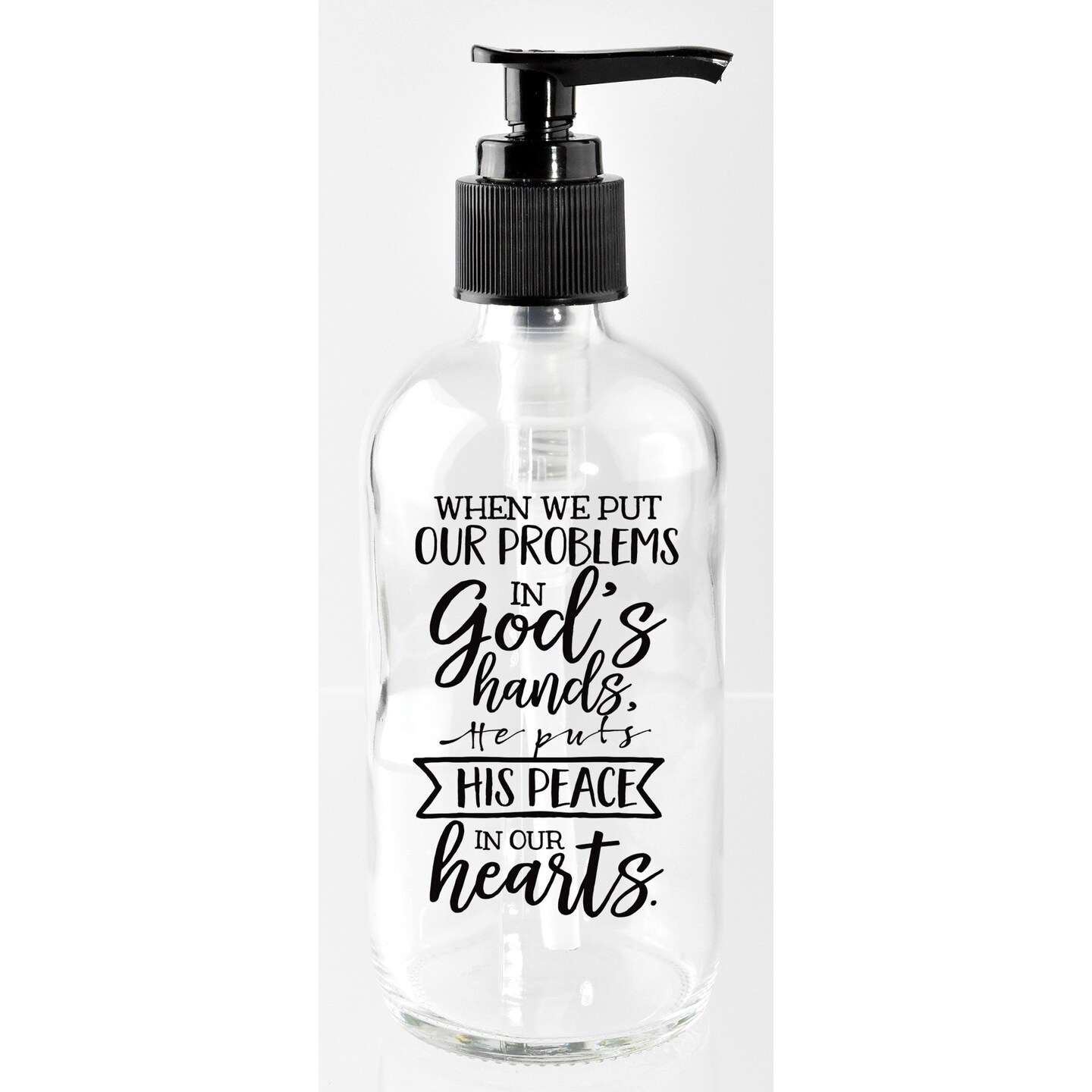 When we put our problems in God's hands, He puts His peace in our hearts. 8 oz Glass Soap Dispenser