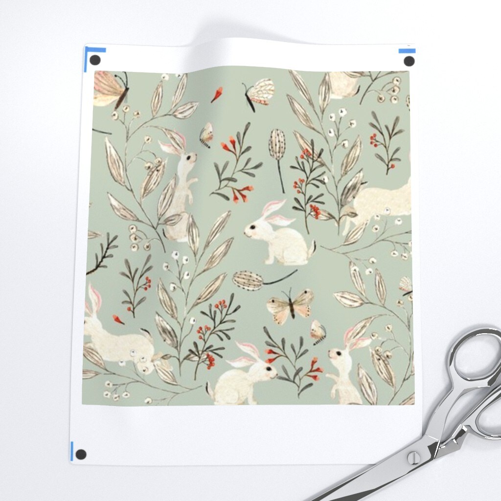 Whimsical Bunnies Easter Bunny Woodland Animals Forest Butterflies Sage Green Custom Pre-pasted Wallpaper by Spoonflower Pre-Pasted Wallpaper 2FT Wide