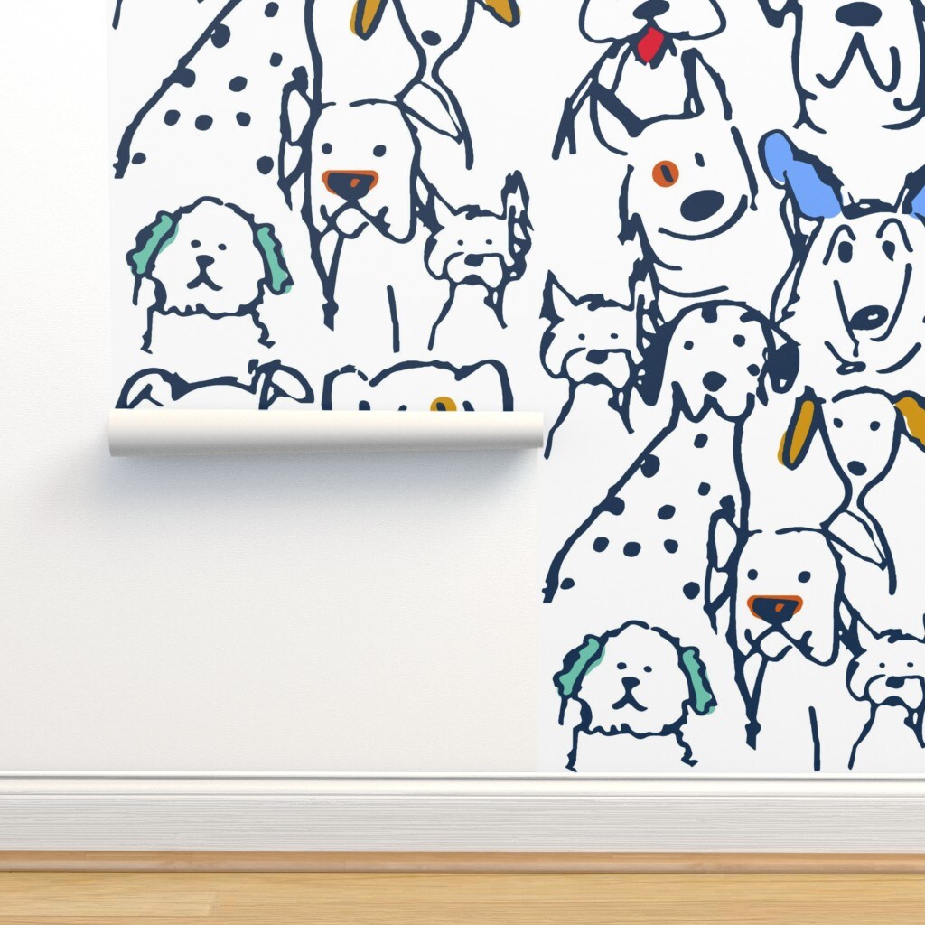 Whimsical Dog Doodle Large Scale Pets Veterinarian Rescue Lover Hand Drawn Quirky Animals Blue Cute Custom Pre-pasted Wallpaper by Spoonflower Pre-Pasted Wallpaper 2FT Wide