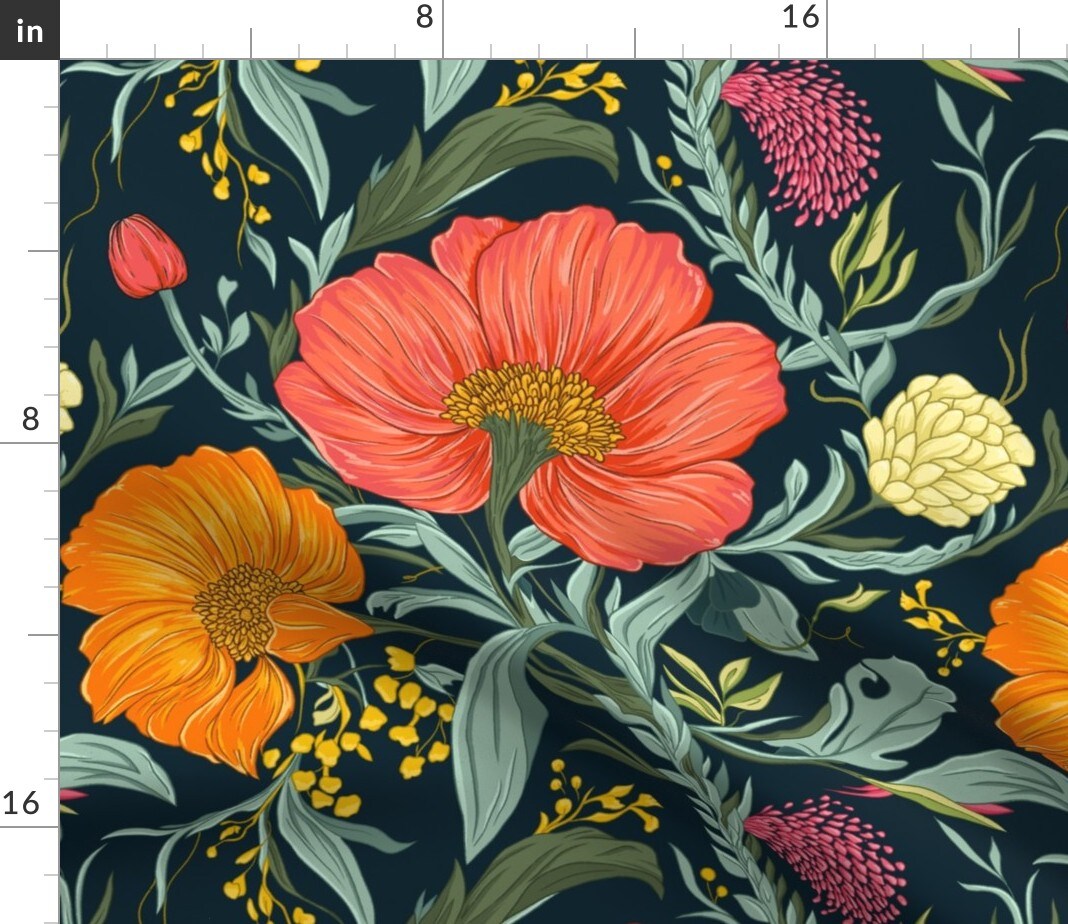 Whimsical Floral Bold Hand Drawn Botanical Garden Modern Florals Tropical Hibiscus Party Spring Summer Statement Orange Pink Green Custom Printed Fabric by Spoonflower Various Fabrics by the Yard or Fat Quarter