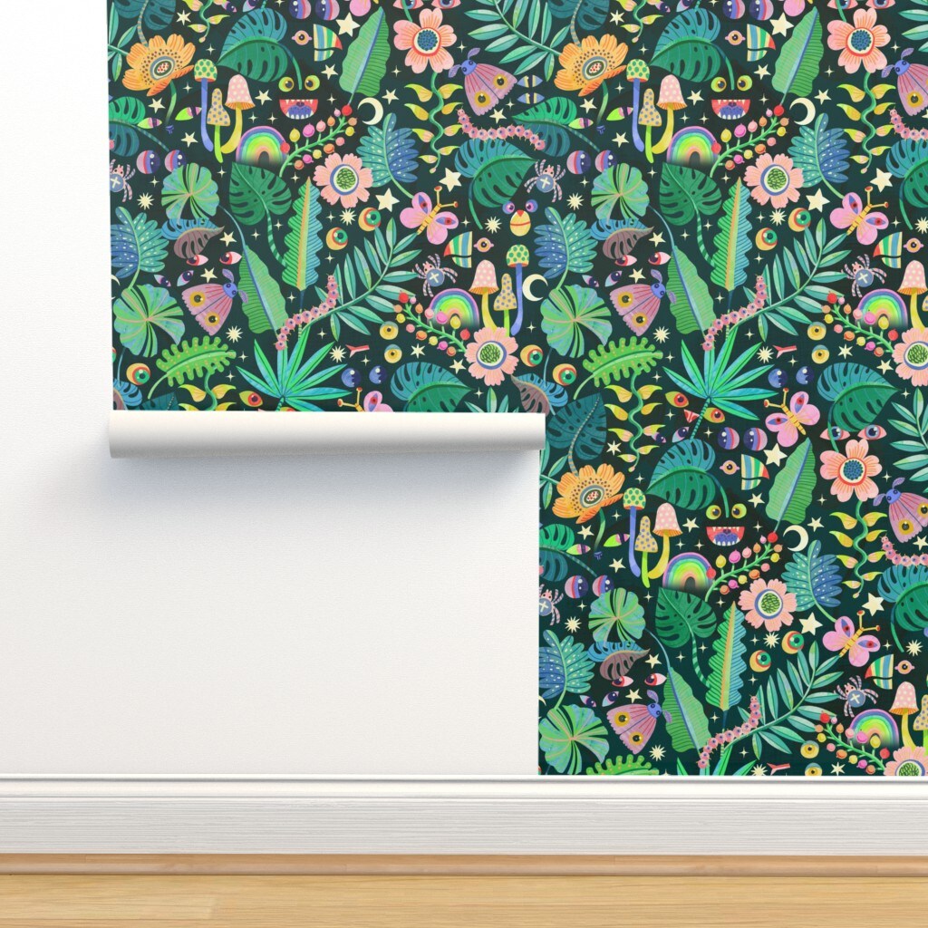 Whimsical Floral Trippy Psychedelic Jungle Tropical Custom Removable Wallpaper by Spoonflower Peel & Stick Wallpaper 2FT Wide