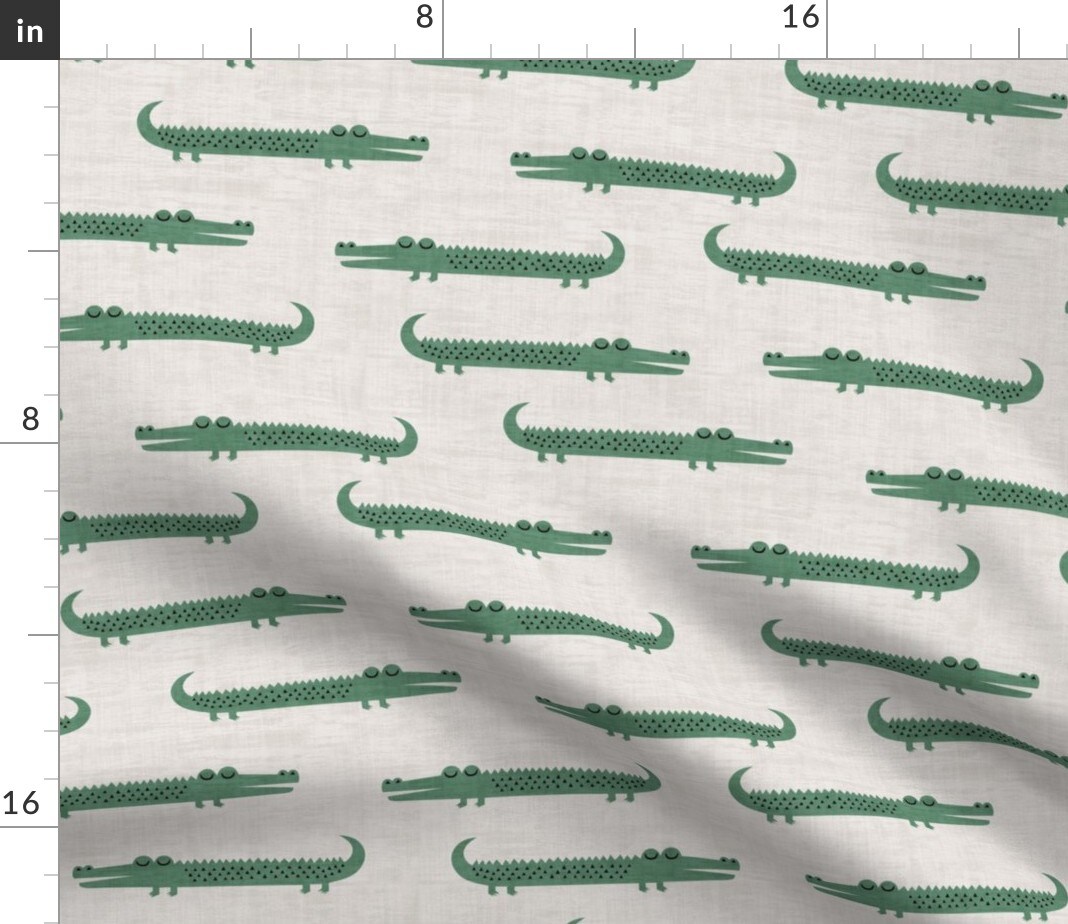 Whimsical Gators Green Beige Gray Boho Animals Fun Cute Happy Cheerful Playful Novelty Custom Printed Fabric by Spoonflower Various Fabrics by the Yard or Fat Quarter