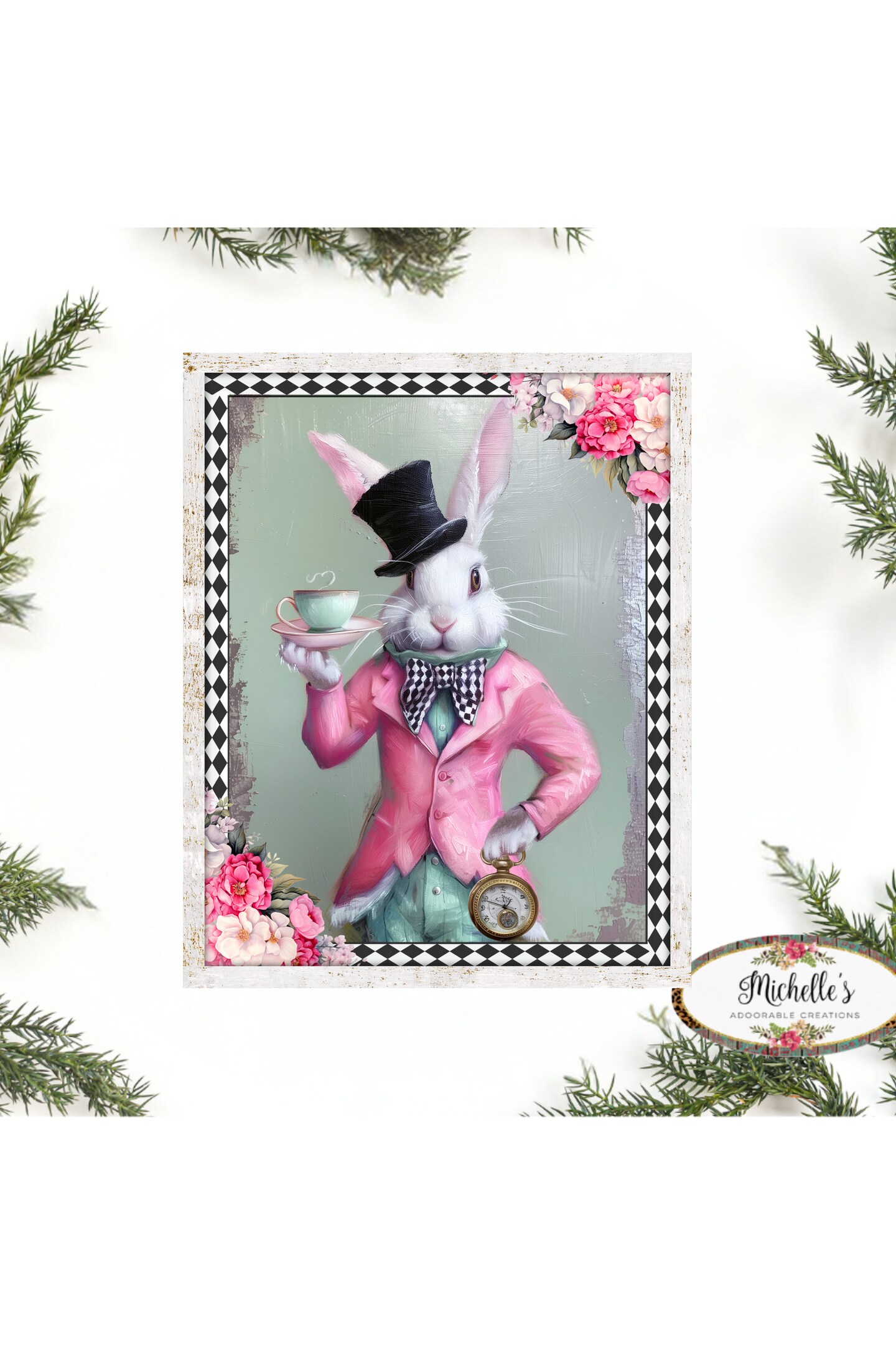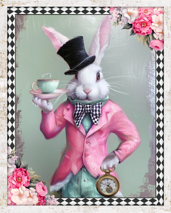 Whimsical Harlequin Vintage Bunny Sign
