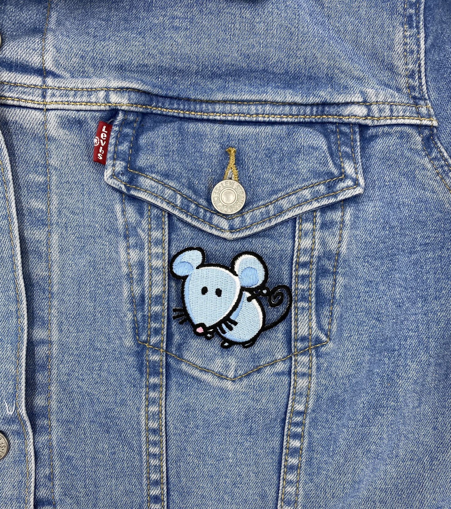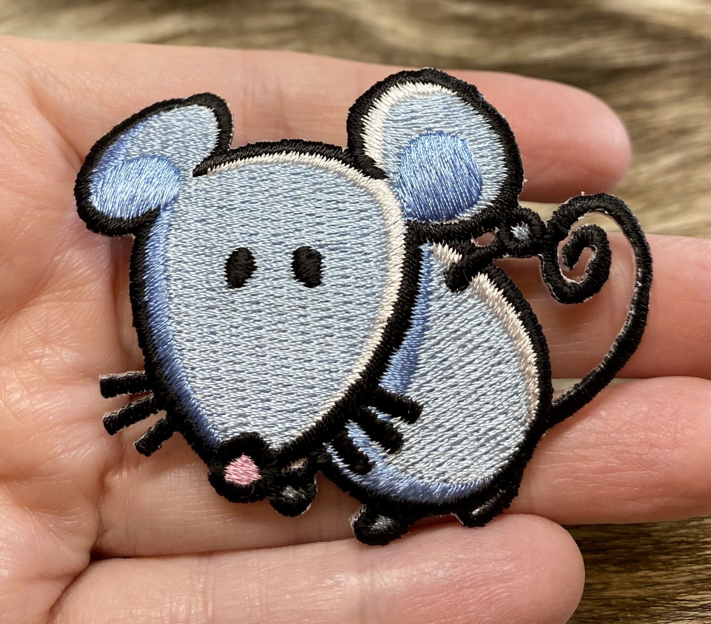 Whimsy Blue Mouse, Animals, Embroidered, Iron on Patch