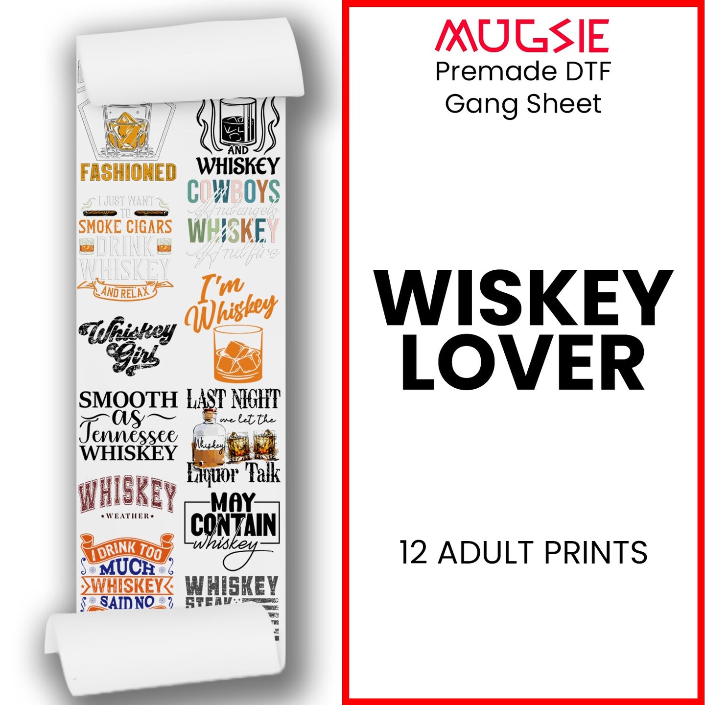 Whiskey Lover DTF Transfer Gang Sheets - 22x60 Direct-to-Film
