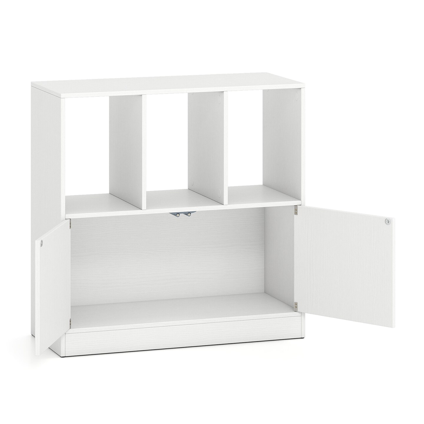 White 3 Cube Storage Bookcase with Doors and Open Shelves