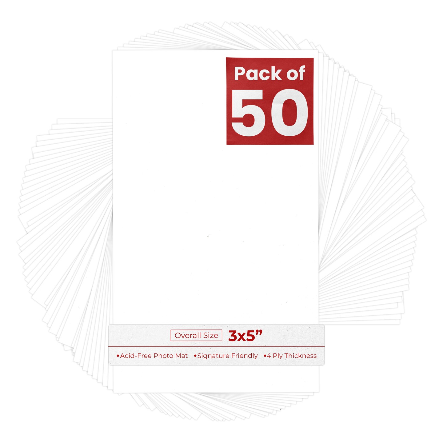 White 3x5 Inch Uncut Mat Board - Blank Sheets, No Opening