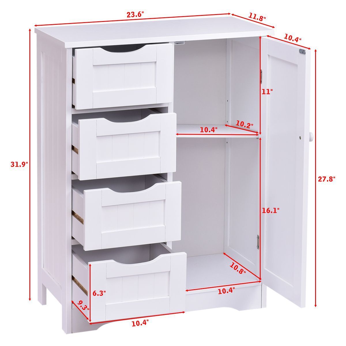 White 4-Drawer MDF Storage Cabinet with Adjustable Shelf for Bathroom or Bedroom