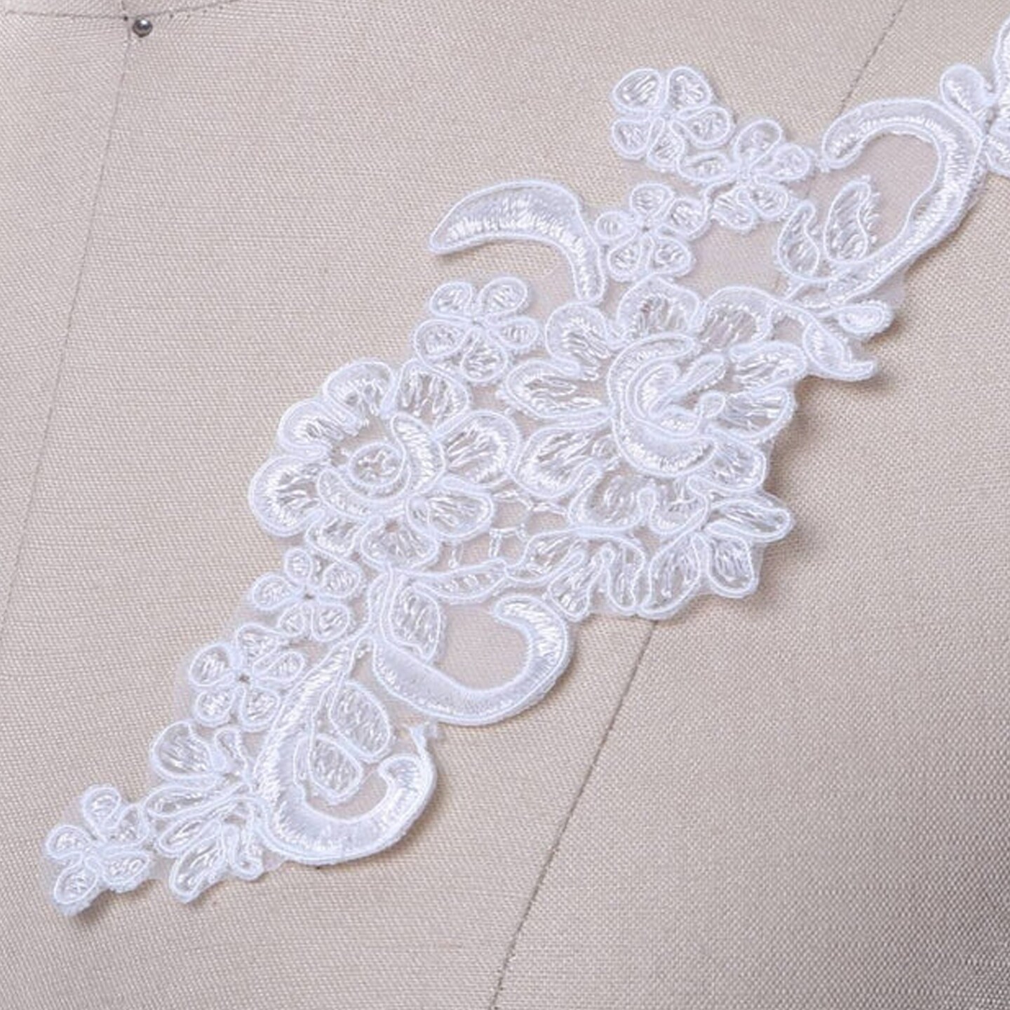 White Alencon Lace Applique Pair With 9 X 3 Inch Mirrored Design