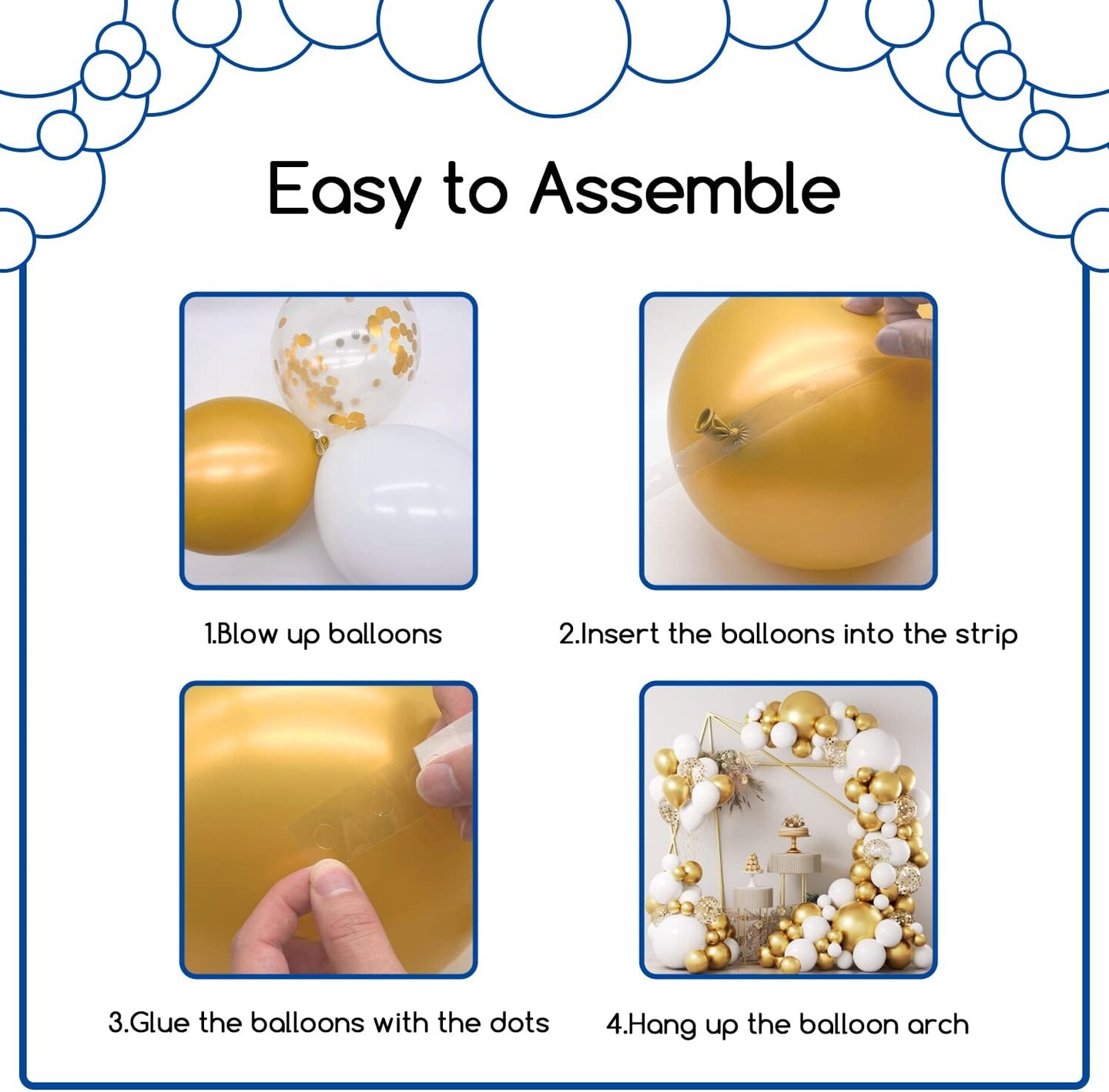 White and Gold Balloons Garland Kit, 124pcs White Metallic Gold Confetti Balloon Arch Kit