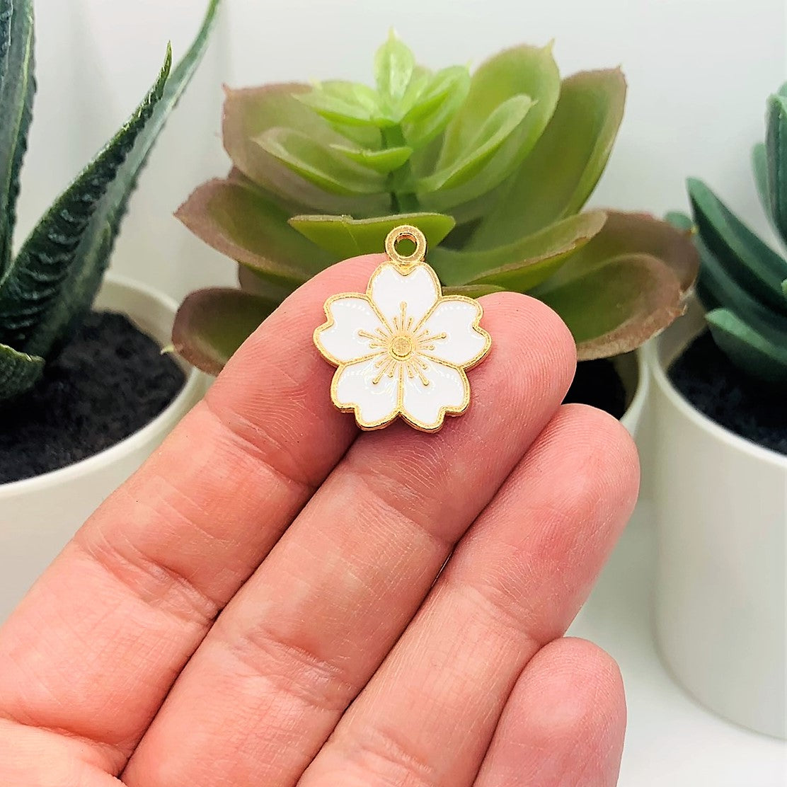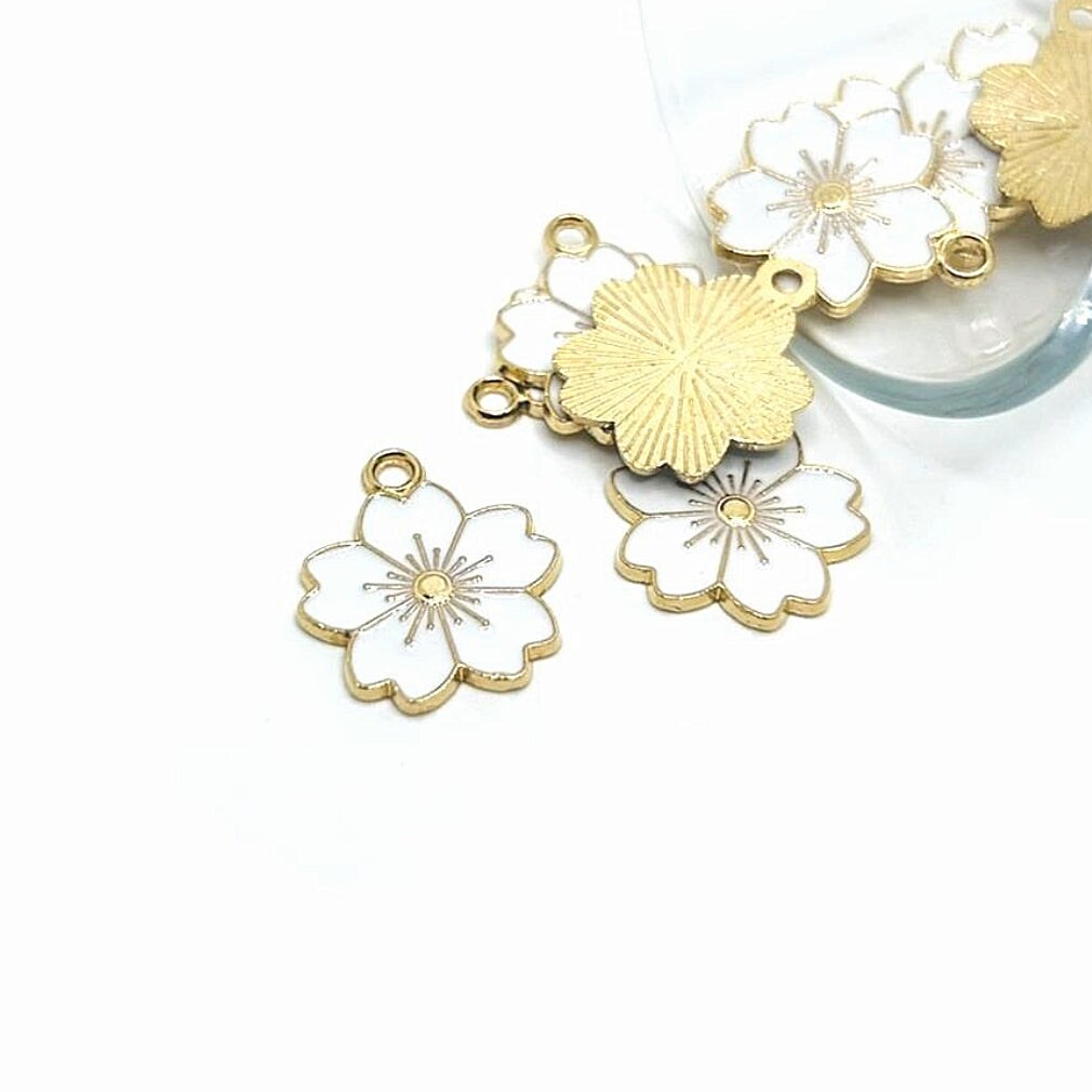 White and Gold Cherry Blossom Flower Charms, 20.5x17.5mm