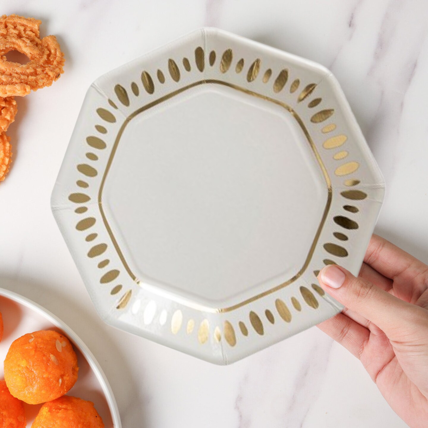 White and Gold Elegant Party Paper Dessert Plates 8 Count Wedding Tableware