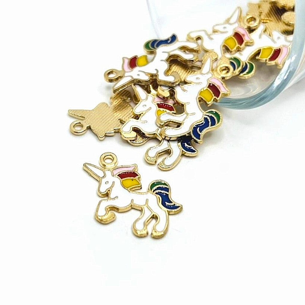 White and Rainbow Enamel Unicorn Charms