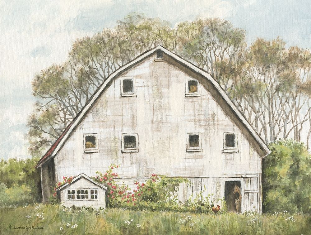 White Barn and Roses Poster Print by Gwendolyn Babbitt - Item # VARPDXBAB476