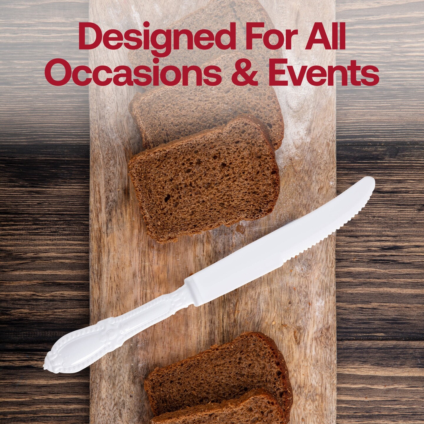 White Baroque Disposable Plastic Dinner Knives (480 Knives)