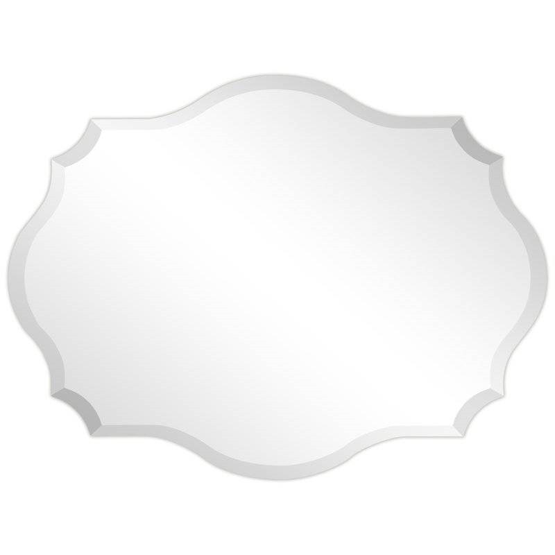 White Beveled Frameless Accent Mirror with Scalloped Corners and Curved Edges