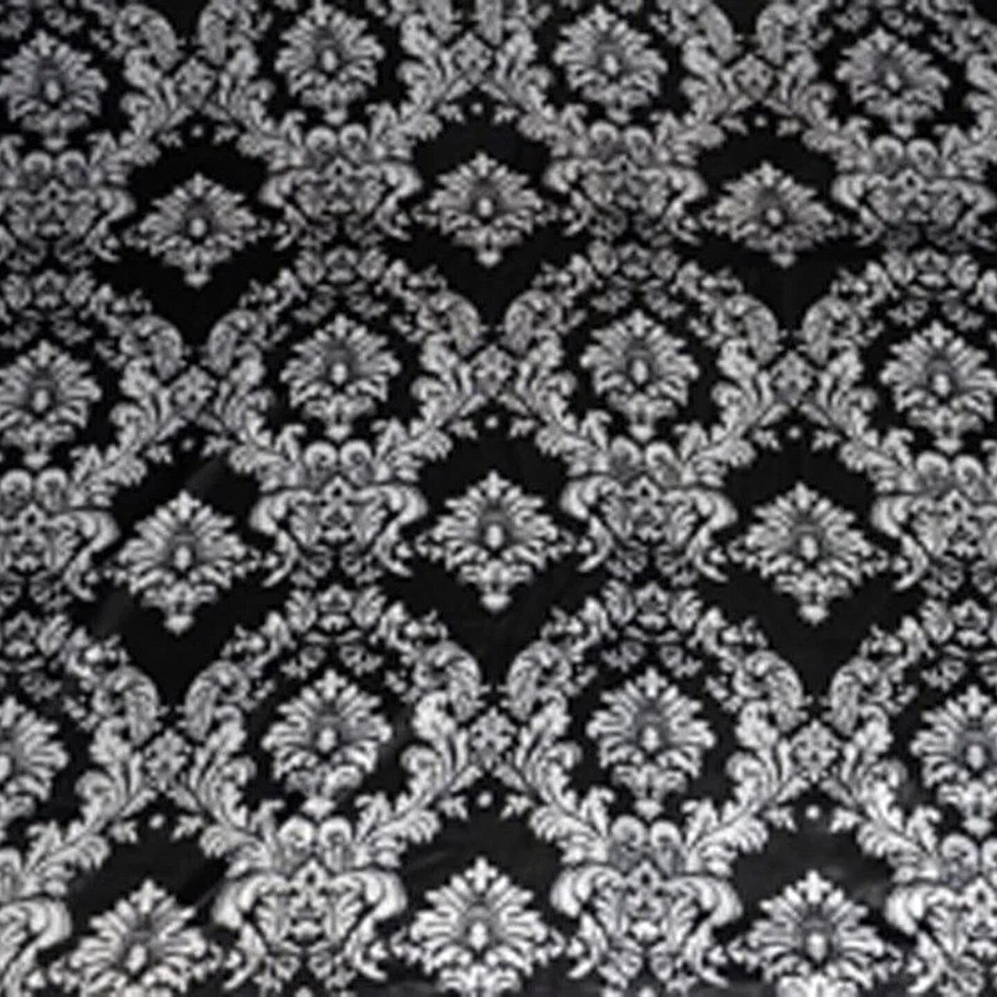 White & Black Damask Satin Print Fabric – Dull Finish 60" Wide