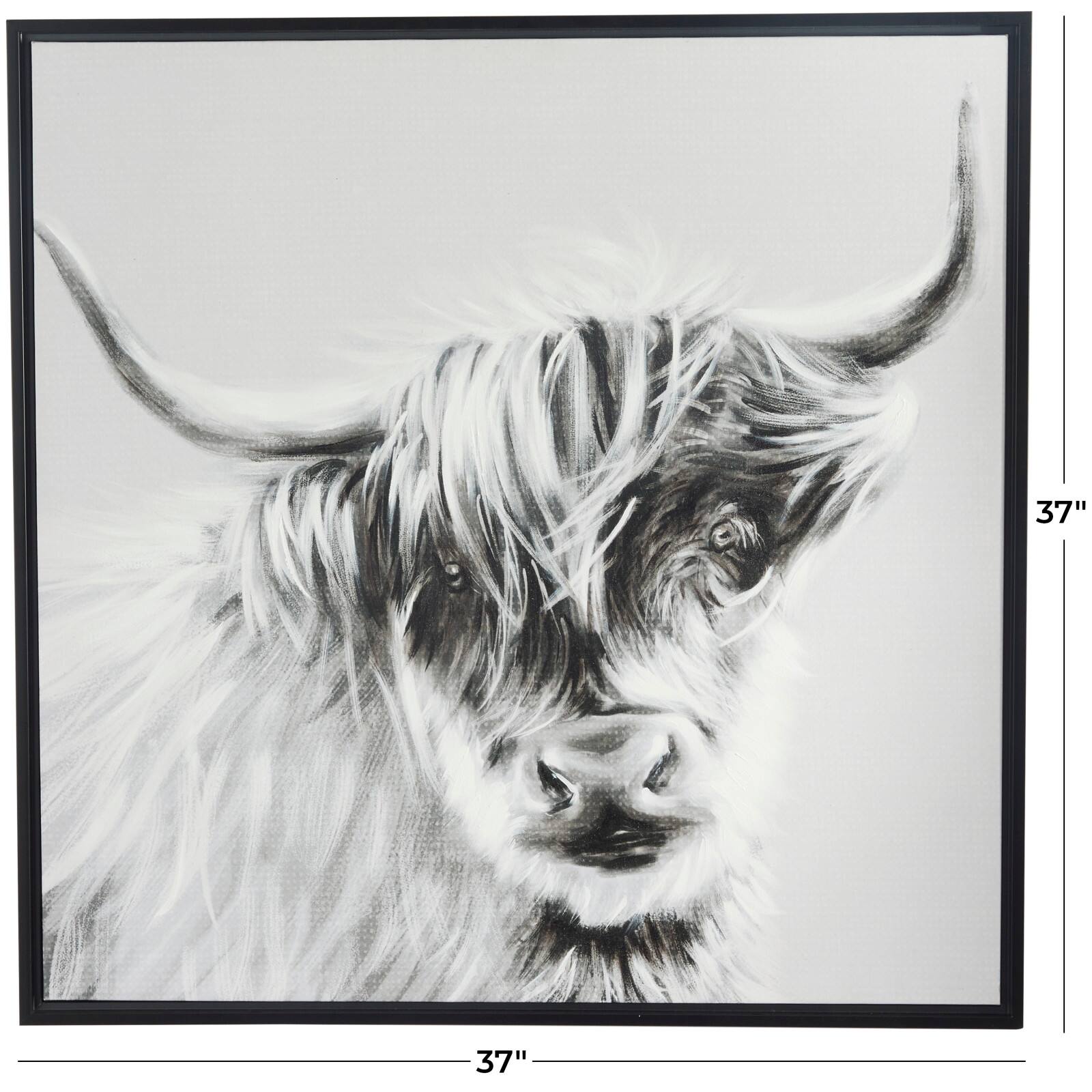 White Canvas Shaded Bull Framed Wall Art with Black Frame 37" x 1" x 37"
