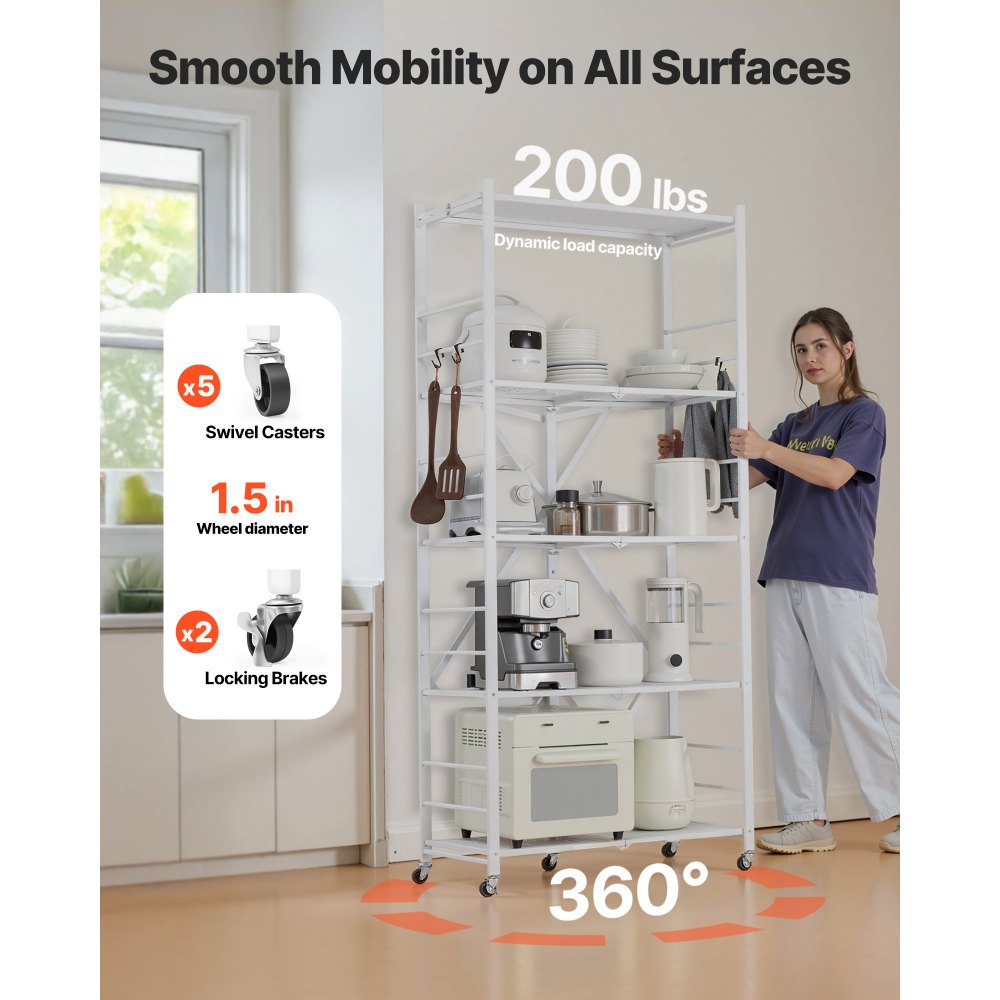 White Carbon Steel Folding Garage Storage Shelf with Wheels and 750 lbs Capacity