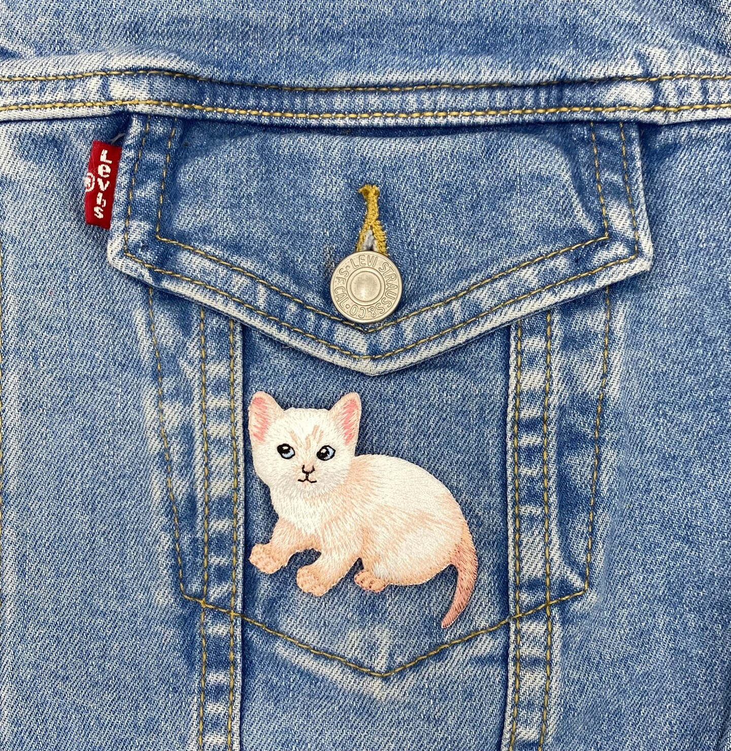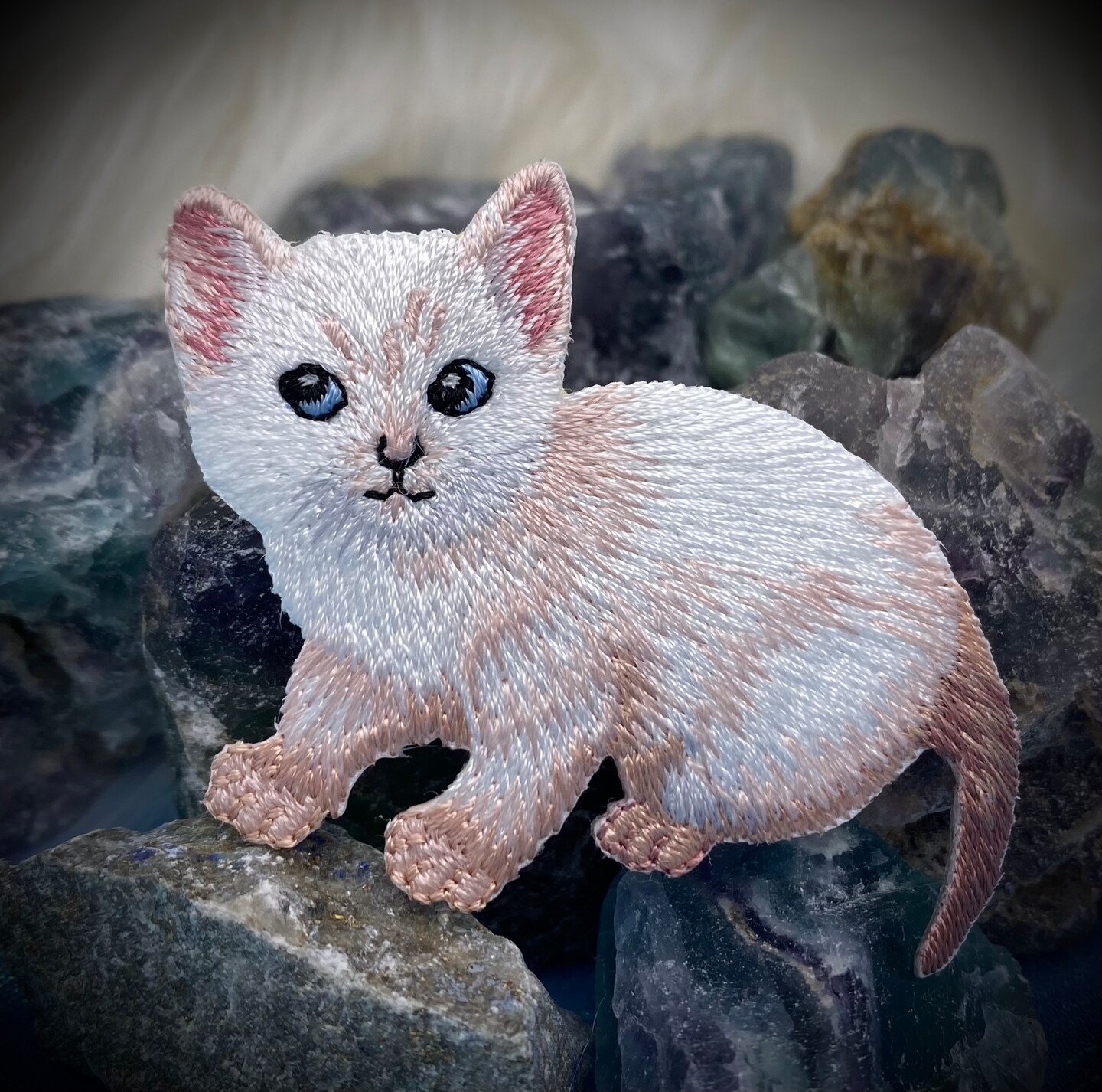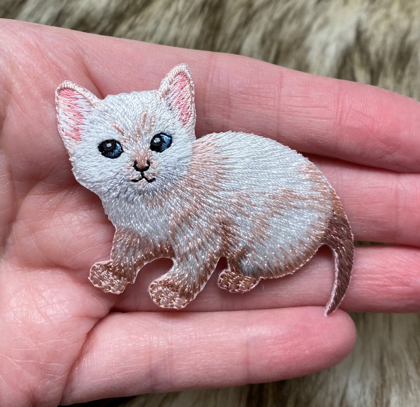 White Cat, Kitten, Realistic Pets, Embroidered, Iron on Patch