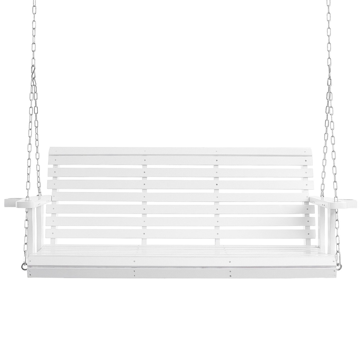 White Cedar Wood Porch Swing with Steel Chains and Cup Holders
